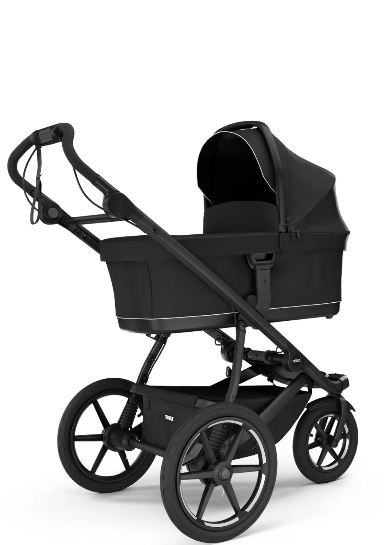 Sicherer Fahrspaß kombiniert mit maximalem Komfort: Das ist der neue THULE Urban Glide 4-Rad für aktive Familien – im Kinderwagen-Set mit Babywanne.