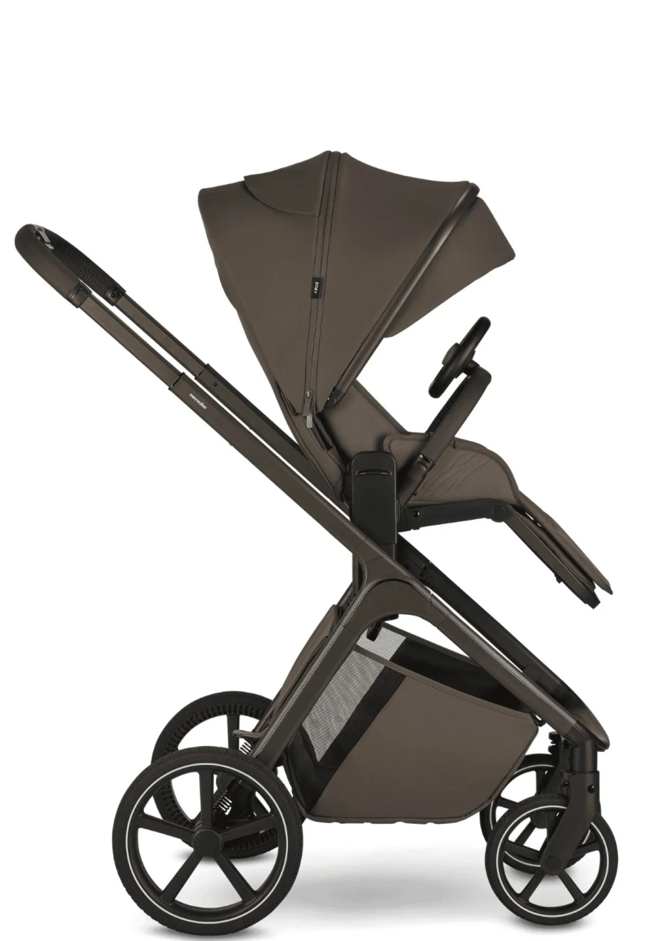 Mehr als nur ein Kinderwagen: Zoey begleitet dich und dein Kind zuverlässig durch alle Abenteuer. Die im Lieferumfang enthaltene Babywanne bietet deinem Neugeborenen einen gemütlichen und sicheren Rückzugsort voller Geborgenheit und Sicherheit. Robuste, hochwertige Räder garantieren eine angenehme Fahrt, ob in der Stadt oder auf holprigen Wegen. Zoeys besondere Stärke ist die hohe Flexibilität: Sitz und Babywanne lassen sich dank integrierter Höhenadapter leicht auf drei Positionen einstellen – ideal für Nähe zu deinem Baby, rückenschonendes Handling und perfekte Sicht für dein Kind. Mit einem Handgriff kannst du die Sitzrichtung nach Belieben ändern: Blickkontakt zu dir oder freie Sicht nach vorn, ganz nach den Bedürfnissen deines Kindes. Das magnetische 5-Punkt-Gurtsystem und ergonomische Schulterpolster sorgen für höchsten Komfort und maximale Sicherheit.