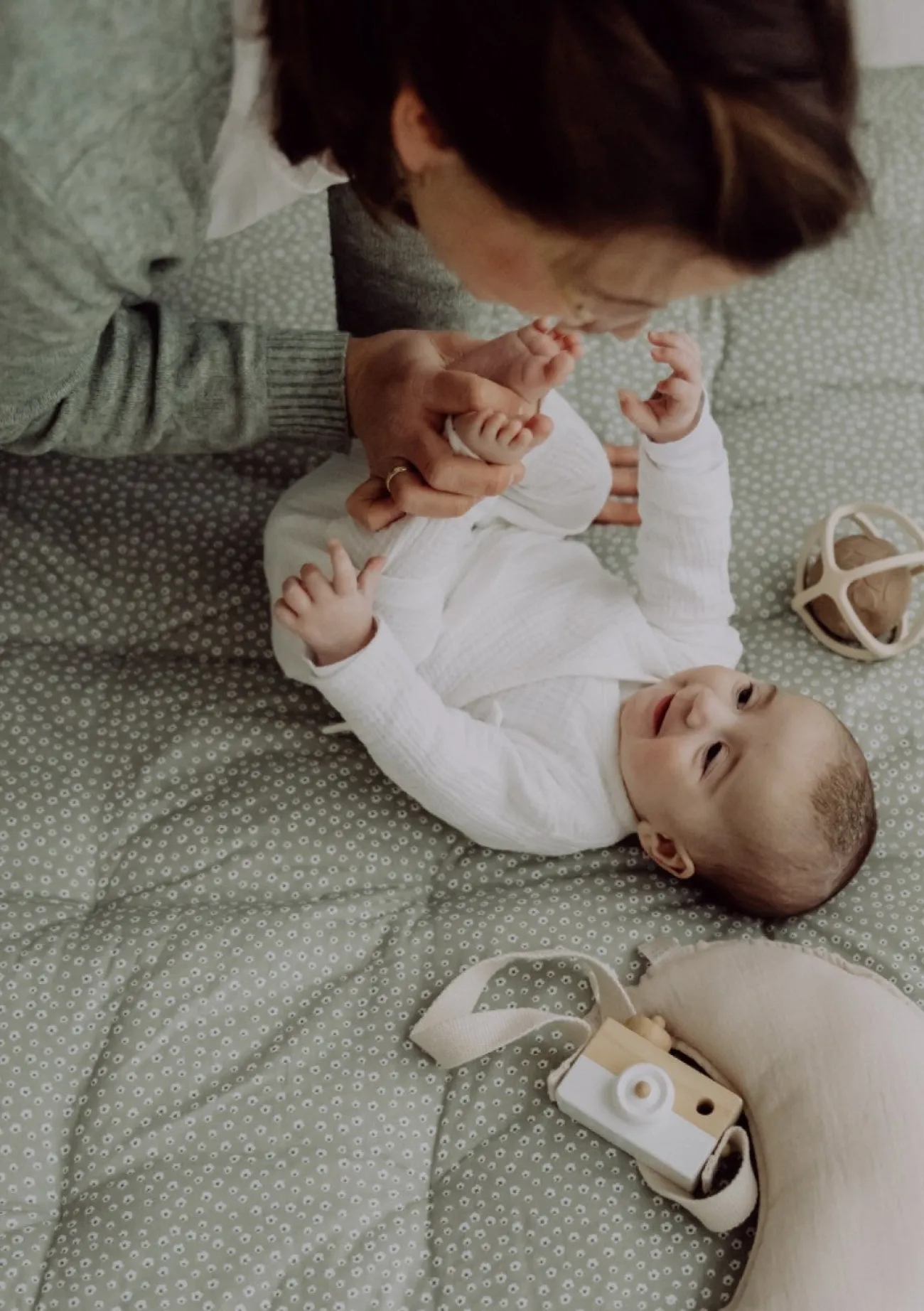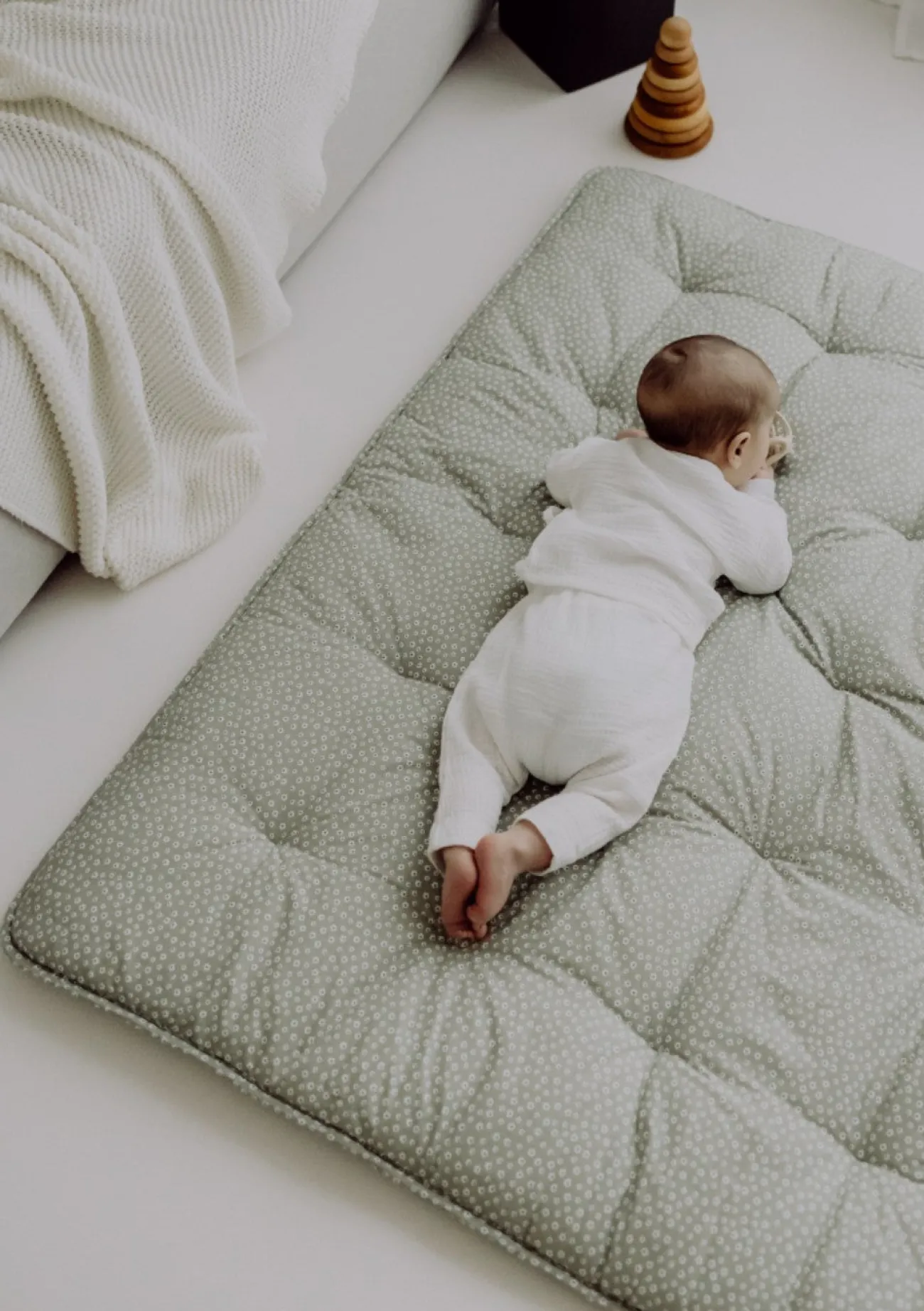 Gemütlich & sicher: die geblümte Krabbeldecke von EMMA & NOAH