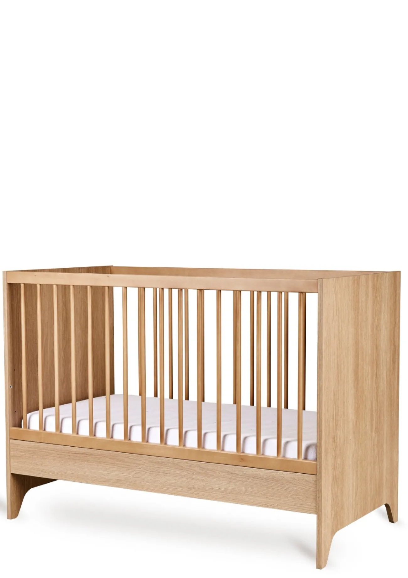 Dieses schlicht-elegant gestaltete Babybett steht für Ruhe, Qualität und minimalistisches Design. Mit seinen sanft gerundeten Formen und der klaren, harmonischen Linienführung schafft es eine geborgene Schlafumgebung, die von Anfang an Vertrauen und Leichtigkeit vermittelt.
