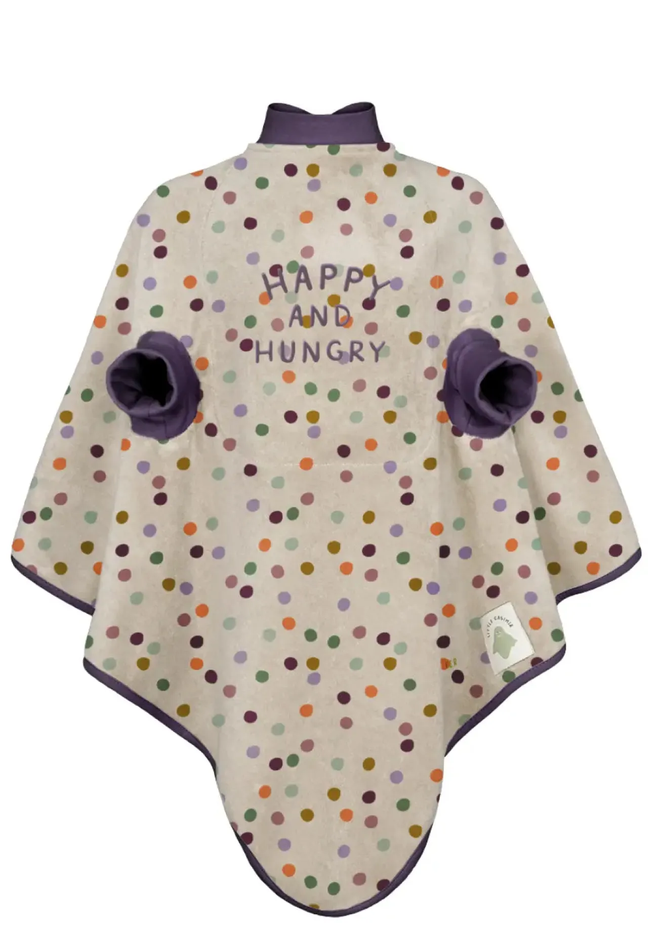 Durchdachte Details wie verstellbare Druckknöpfe im Nacken, weiche Ärmelbündchen und der weite, bequeme Schnitt machen das An- und Ausziehen zum Kinderspiel. Ein echtes Multitalent für kleine Entdecker – egal, ob beim Essen, Malen oder kreativen Ausprobieren.