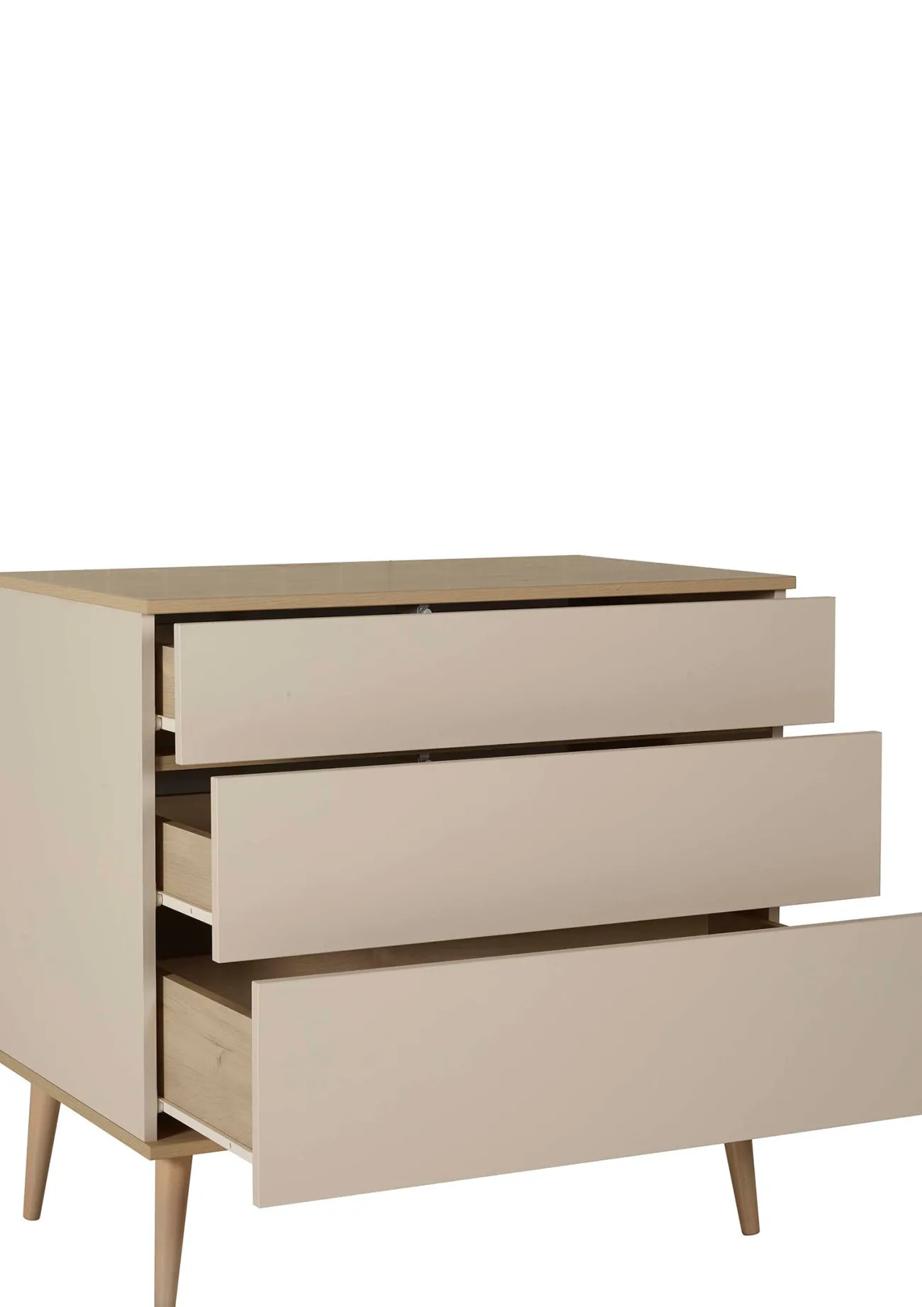 Funktional und absolut zeitlos: Diese elegante Kommode aus der Flow-Kollektion von QUAX bietet mit ihren großen Schubladen ausreichend Platz für alles, was ordentlich verstaut und schnell zur Hand sein soll. Optional ist das hochwertige Möbel mit einem praktischen Wickelaufsatz für die Nutzung als großzügige Wickelkommode ab Geburt erhältlich. Selbstverständlich lässt sich der Aufsatz rückstandslos wieder entfernen, so dass euch die Kommode über viele Jahre Freude bereitet.