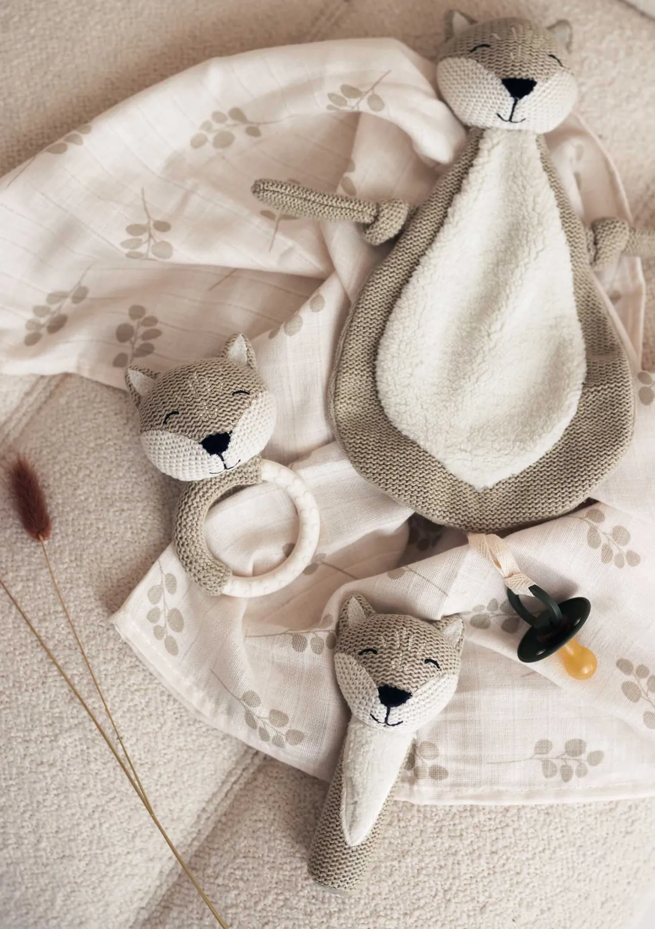 Niedliche Hilfe, wenn die ersten Zähnchen drücken: Der Beißring in süßem Fuchs-Design lindert die Schmerzen. Und wenn die Zähne gerade keine Probleme machen, ist er auch ein tolles Greif-Spielzeug! Im gestrickten Teil ist ein kleines Glöckchen versteckt und regt die Feinmotorik deines Babys an. Auch ein tolles Geschenk zur Geburt! Welches ist dein Lieblingstier?