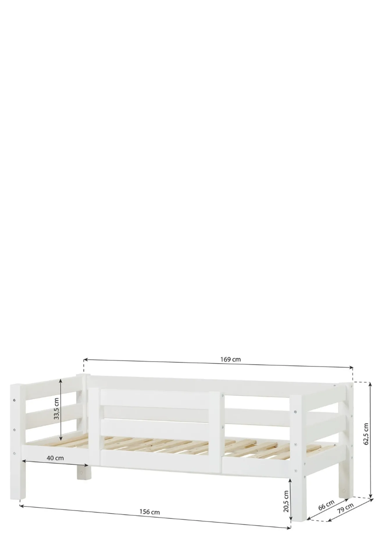 - je nach Alter des Kindes/Sicherheitsbedürfnis optional mit einem Bettschutzgitter in verschiedenen Größen erhältlich: ohne Rausfallschutz, mit kleinem oder großem Rausfallschutz (bitte geeignete Variante auswählen!)