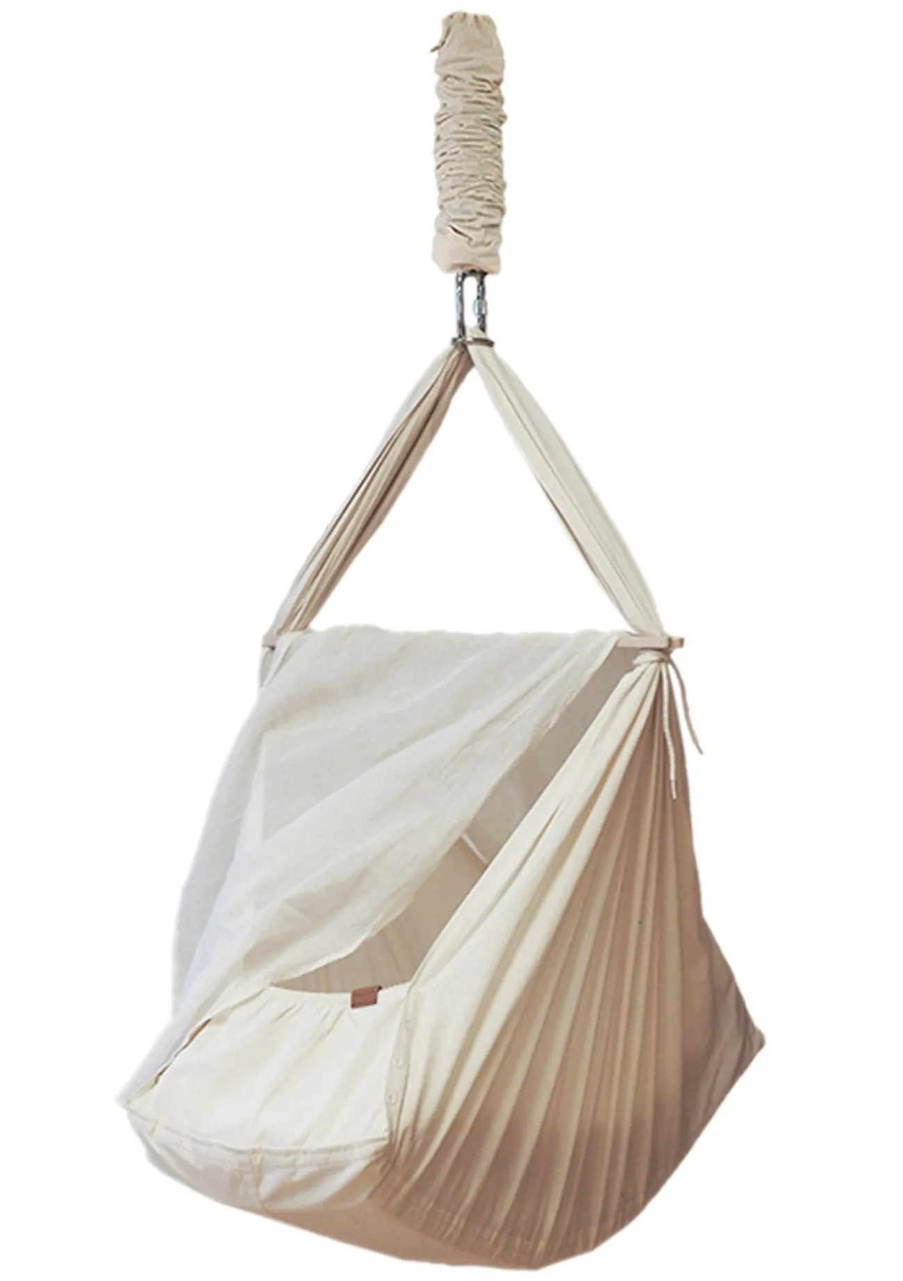 - Premium-Federwiege aus ökologischer Baumwolle inkl. Querstange, Feder mit Sicherungsgurt, Stoffbeutel, Woll-Matratze mit abnehmbarem Bezug, Spannbettlaken mit Stickerei, Karabiner mit Schraubverschluss und Gummiisolierung
