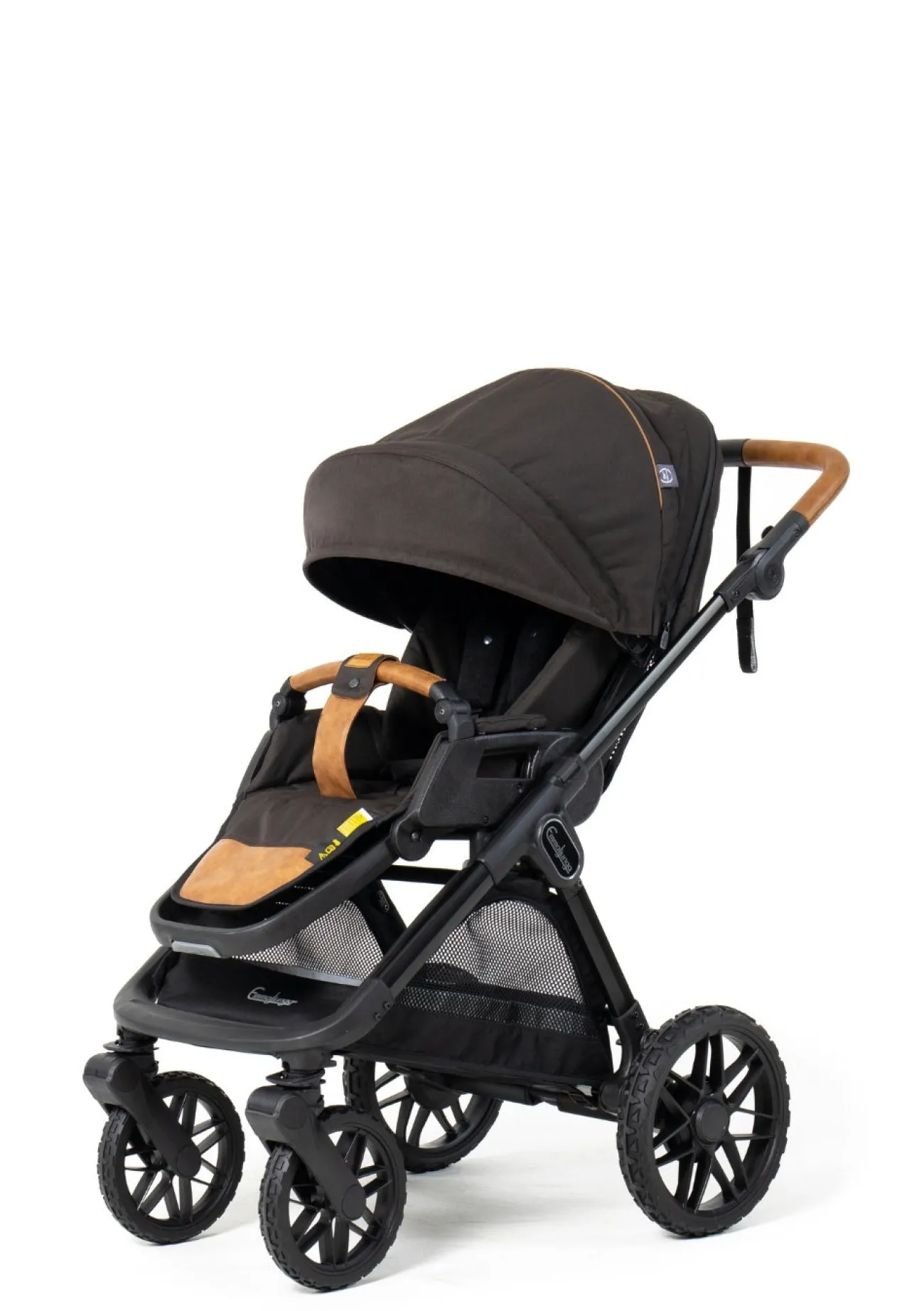 - robust-gestalteter Kinderwagen im Outdoor-Look mit edlen Leatherette-Akzenten