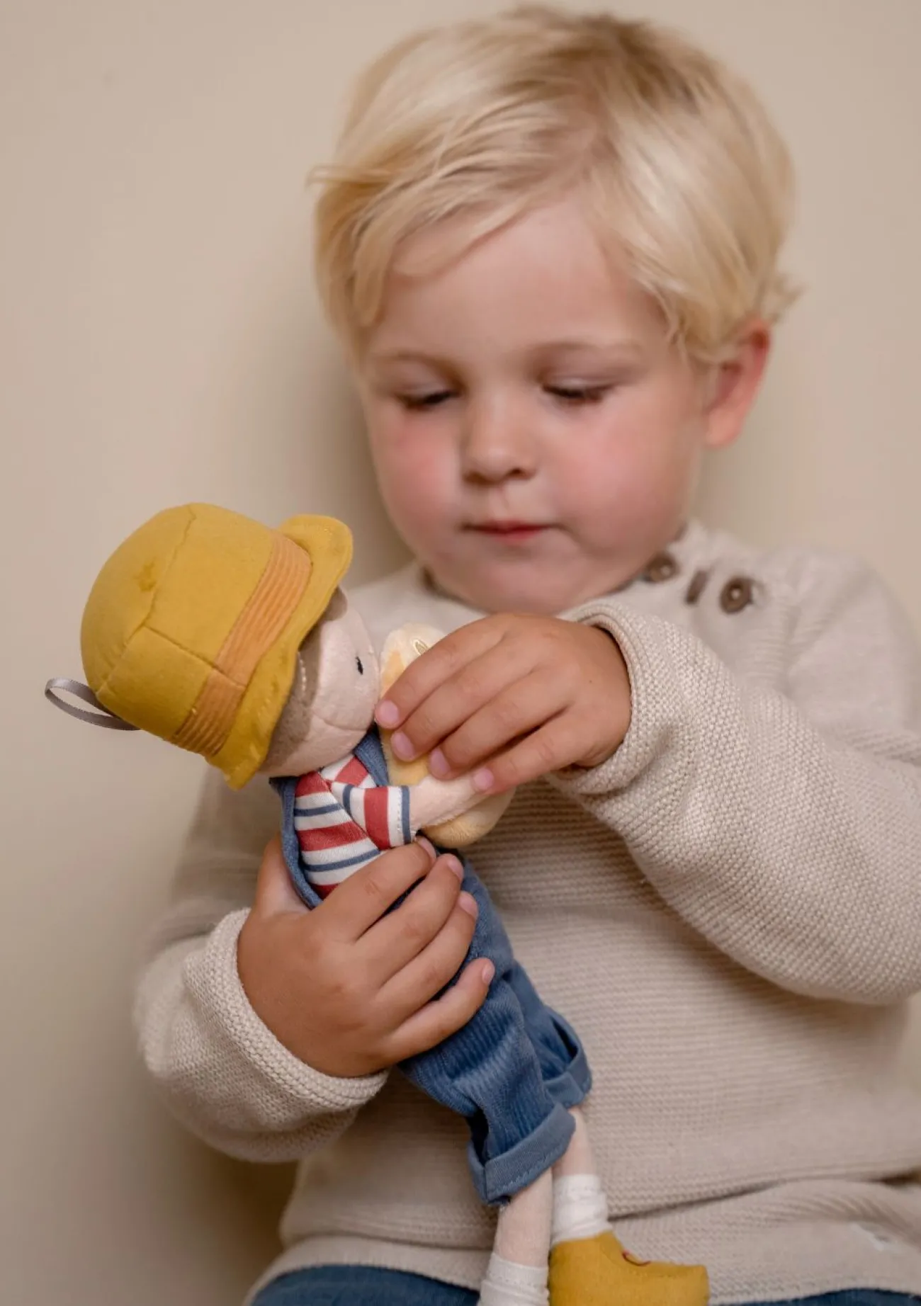 Im Farmer-Look präsentiert sich diese niedliche Stoffpuppe aus der Little Farm-Kollektion von LITTLE DUTCH und fordert zum Spielen und Kuscheln auf. Da Bauer Jim ein wahrer Käseliebhaber ist, trägt er ein köstliches Stück ständig bei sich. Die Puppe wird im schönen Pappkarton geliefert, wodurch sie sich optimal zum Verschenken eignet.