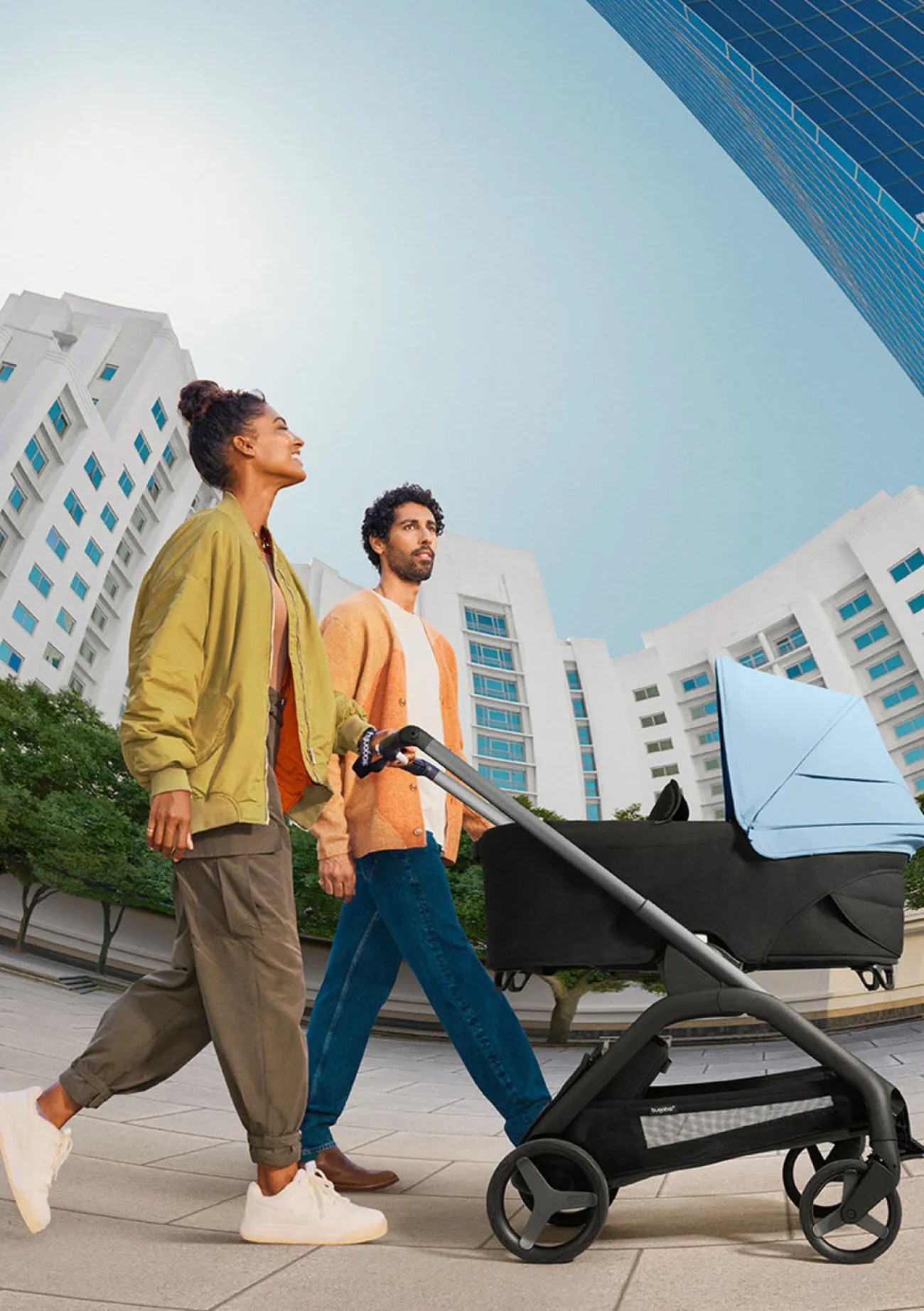 Besonders praktisch: Der Dragonfly lässt sich sogar mit aufgesetzter Babywanne komfortabel zusammenklappen und platzsparend verstauen.