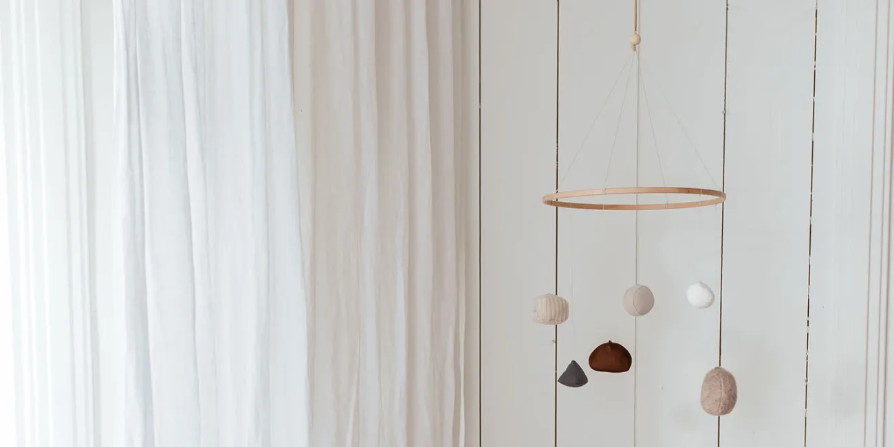 - wunderschönes Mobile mit sechs Formen aus Baumwolle