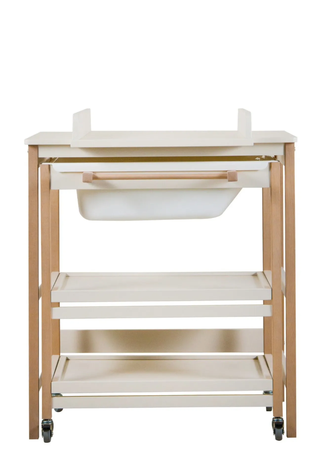 Diese wunderschöne Wickelstation des belgischen Labels QUAX vereint anspruchsvolles Design und durchdachte Funktionalität. Der Wickeltisch ist mit einen weiteren Korpus ausgestattet, der sich bei Bedarf herausrollen lässt und über eine integrierte Baby-Badewanne verfügt. Die herausziehbaren Regalbretter bieten viel Platz, für alles, was du beim Windeln wechseln, An- und Ausziehen oder Pflegen deines kleinen Lieblings immer griffbereit haben möchtest. Wirklich smart!