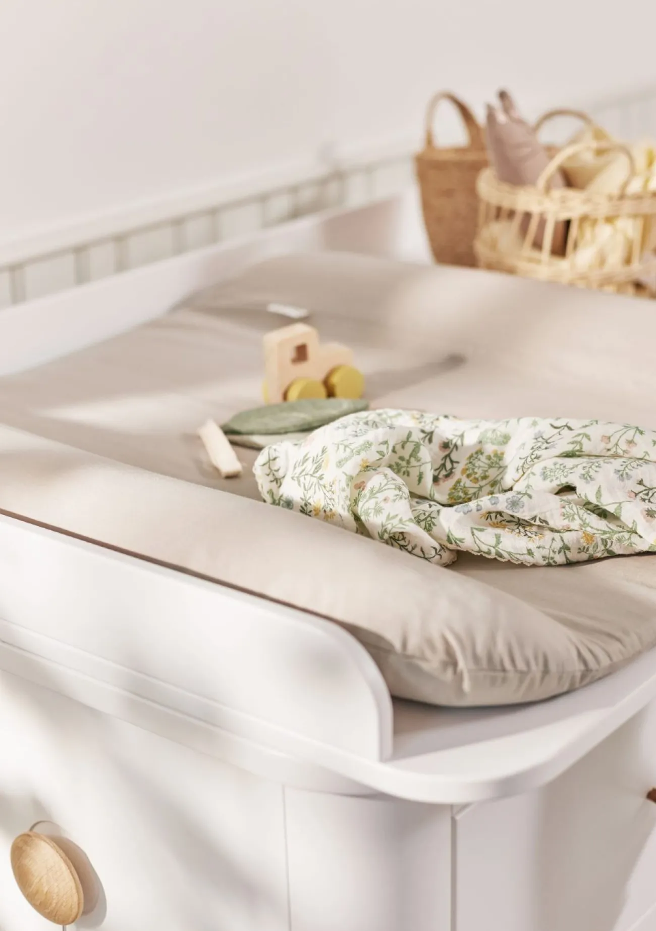 Diese schlicht-elegante Wickelauflage von DEAR APRIL ist dank der Verarbeitung hochwertiger Bio-Materialien besonders umweltfreundlich. Der imprägnierte und wasserabweisende Bezug lässt sich einfach abwischen, kann aber auch in der Waschmaschine gereinigt werden. Das hautschmeichelnde Wickelkissen schenkt deinem Baby Komfort und Geborgenheit. Für mehr Sicherheit beim Wickeln sorgen die erhöhten Seitenränder.