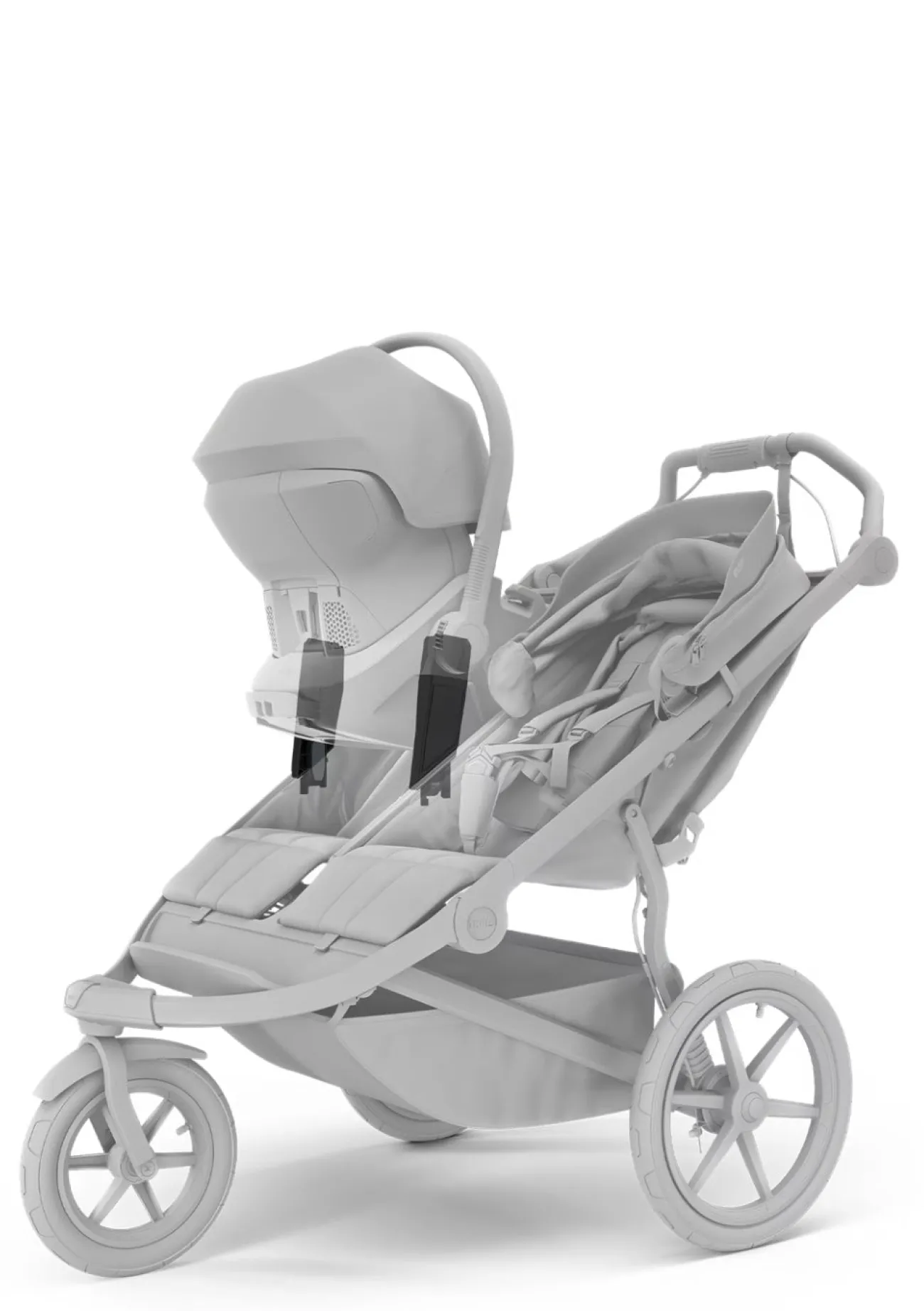 Mit diesem praktischen Zubehör-Set kannst du euren THULE Urban Glide 3 Double Geschwisterwagen mit einer Babyschale aus dem Auto kombinieren – und schon können ein Baby und ein älteres Geschwisterkind mitreisen. Die Adapter werden ganz einfach auf das Gestell geklickt, so dass sich die Babyschale spielend leicht befestigen lässt. Perfekt für kurze Wege oder Besorgungen!