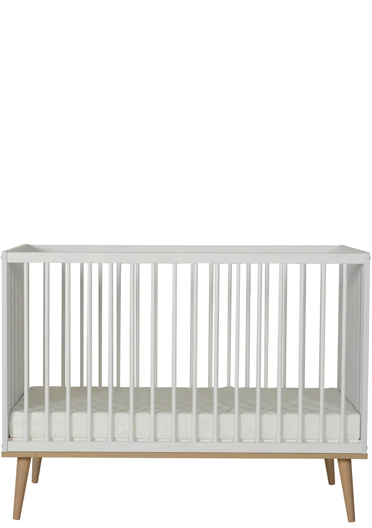 Dieses traumhafte schöne QUAX Babybett mit den für den nordischen Stil charakteristischen Beinen bietet einen gemütlichen Rückzugsort für all die vielen Schläfchen, die dein Baby benötigt. Das Modell macht optisch was her und vereint Sicherheit und Ästhetik mit durchdachter Funktionalität. Das Babybett Flow verfügt über drei verstellbare Matratzenhöhen (30 cm, 45 cm und 60 cm), sodass es sich leicht an die Bedürfnisse deines heranwachsenden Babys anpassen lässt und dir höchsten Komfort bietet. Ein wunderbar Begleiter von der Geburt bis ins Kleinkindalter.