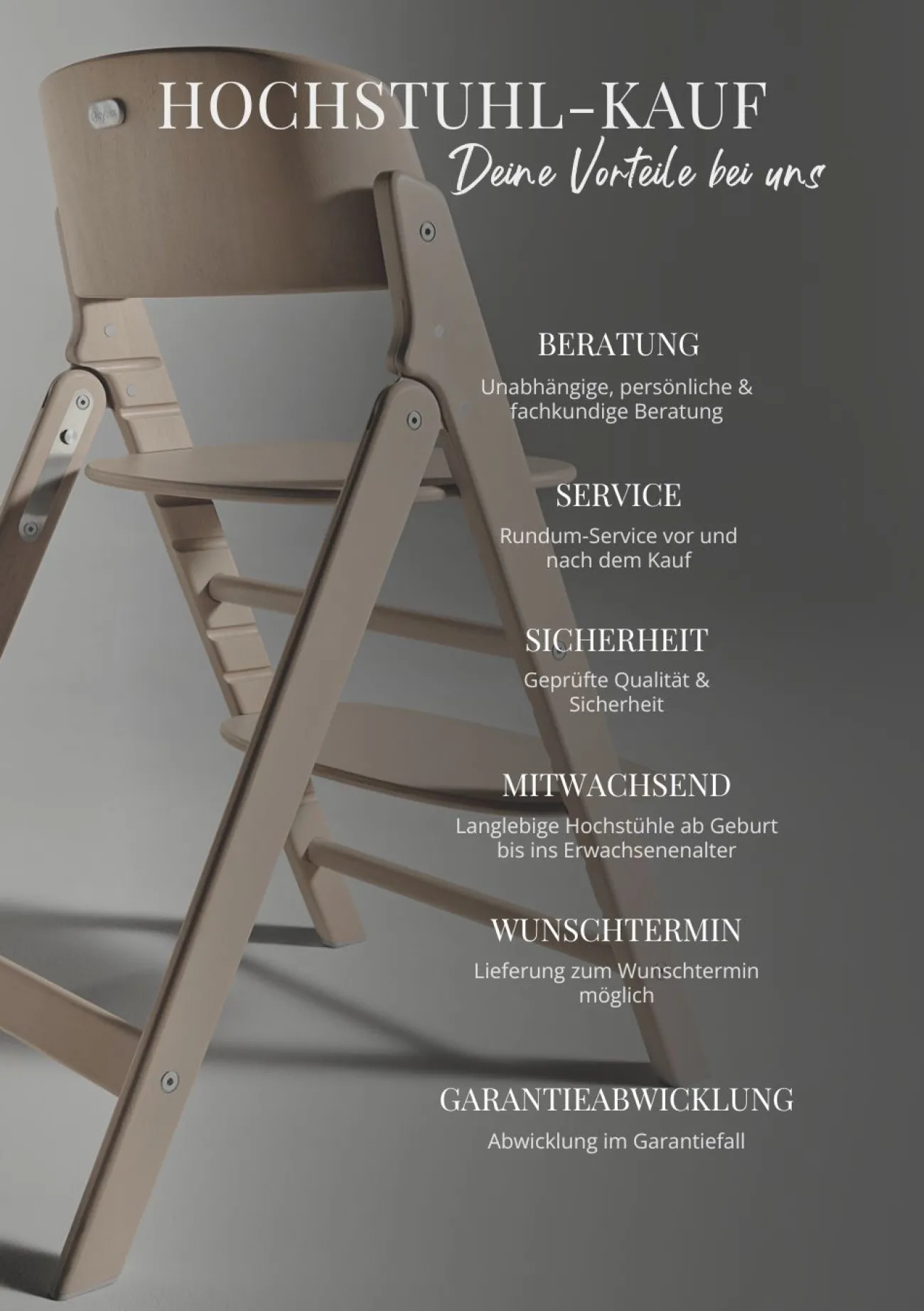 Das praktische 3-in-1 Set ist optimal für Babys ab etwa sechs Monaten geeignet und stellt eine sinnvolle Anschaffung für den Beikost-Start dar. Neben dem sicheren Babysitz umfasst das Set ein praktisches Tablett zum Anklicken, auf welchem du deinem Liebling Snacks oder Spielzeuge anbieten kannst. Nach der Baby- und Kleinkindzeit lassen sich Sitzbrett und Fußstütze für mehr Beinfreiheit in der Höhe anpassen, so dass euch der Stuhl über viele Jahre hinweg begleitet – sogar bis ins Erwachsenenalter deines Kindes.