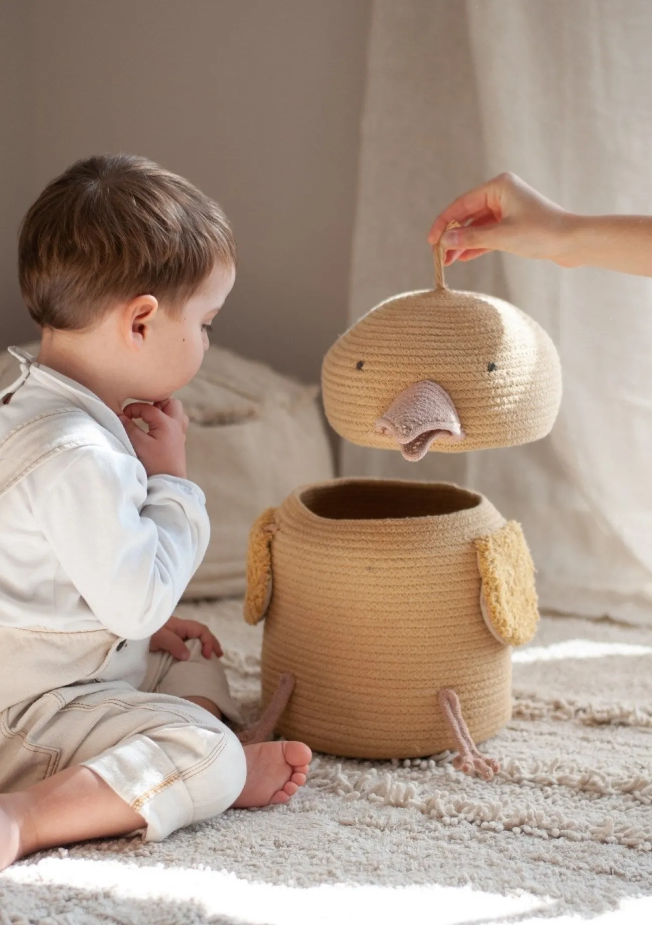 Ob Kuscheltiere, Bausteine oder kleine Schätze – im niedlichen Aufbewahrungskorb Charlie von LORENA CANALS finden Spielsachen nicht nur ein Zuhause, sondern auch ein tierisch niedliches Versteck. Das süße Körbchen in Küken-Gestalt bietet Stauraum und lässt sogar die Kleinsten Freude am Aufräumen empfinden.