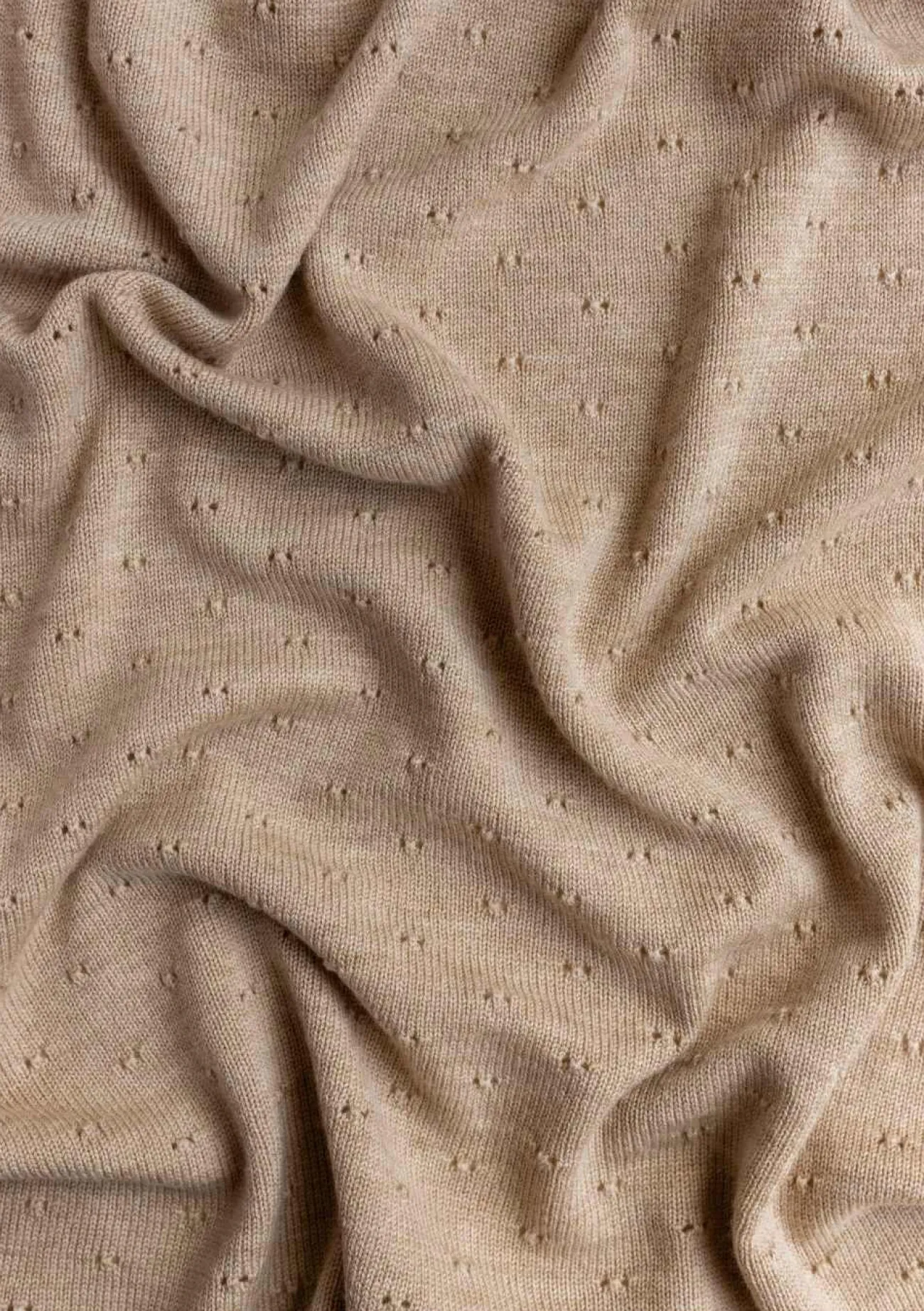 Diese kuschlige Decke von HVID hält dein Baby warm und geborgen. Die Wolle des Merinoschafs ist unglaublich weich und angenehm auf der Haut. Mit dem eingewebten Muster ist dieses Accessoire ein echter Hingucker!