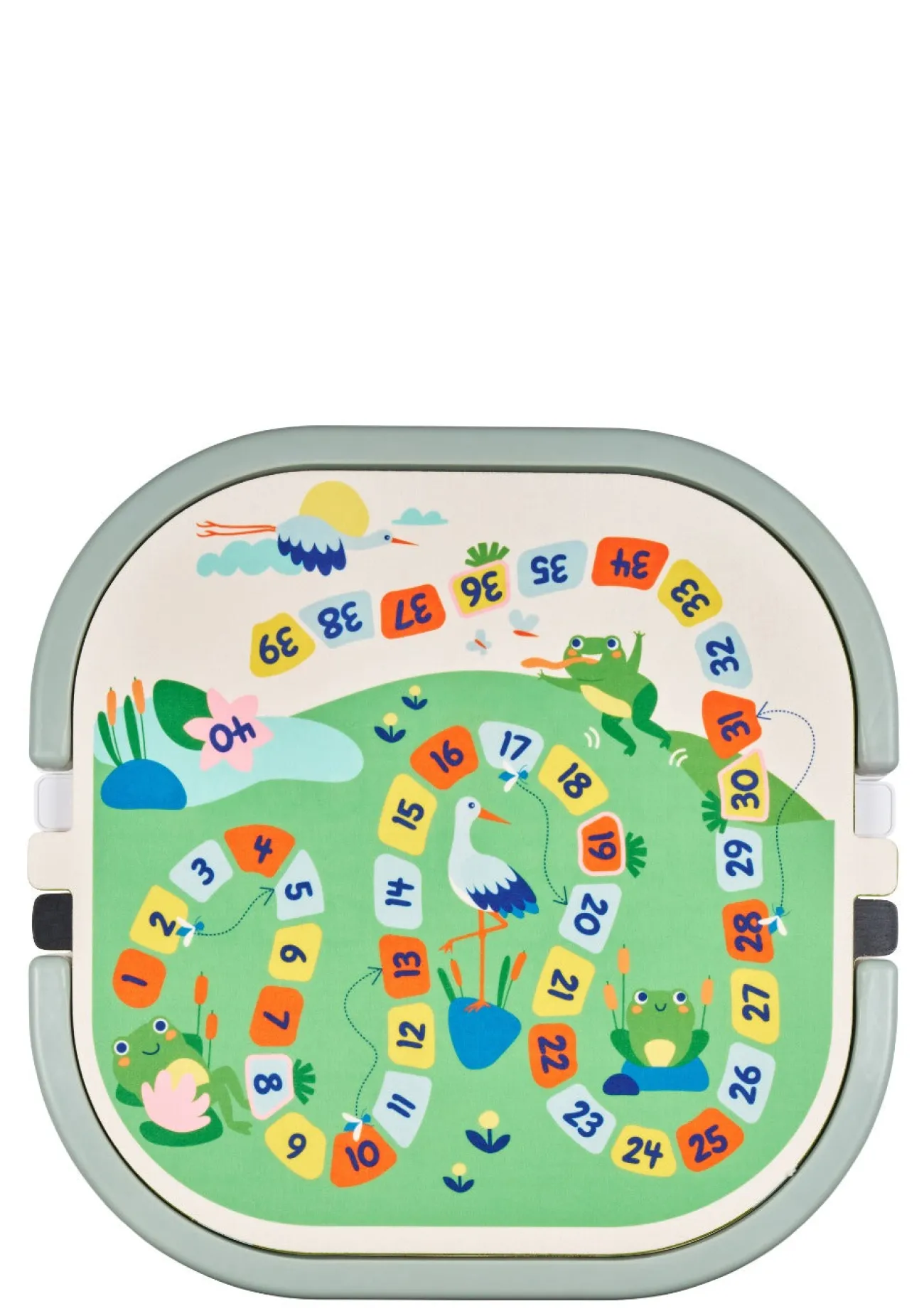 - 8-in-1 Spielplatten-System mit vier doppelseitigen Platten: Holz-Tischplatte, Kreidetafel, Ludo- & Froschspiel, Stadt- & Naturlandschaft, Klemmbausteinplatten für kleine und große Spielsteine