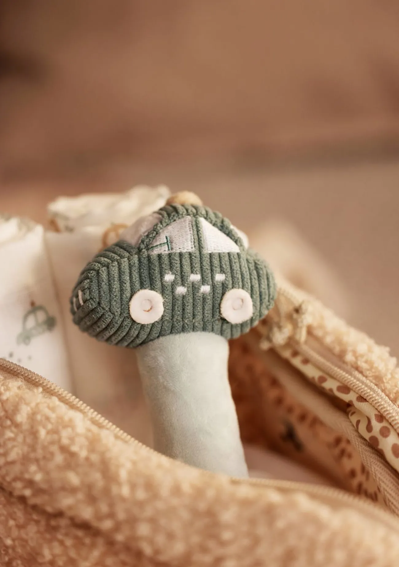Diese liebevoll gestaltete Rassel von JOLLEIN ist perfekt für kleine Entdecker. Der praktische Griff sorgt dafür, dass dein Baby die Rassel sicher greifen und gut festhalten kann. Schüttelt dein Kind das niedliche Auto, erklingen fröhliche Geräusche, die spielerisch die Sinne fördern. Entdecke noch weitere süße Spielzeuge für die Kleinsten aus der zauberhaften On The Go-Serie.