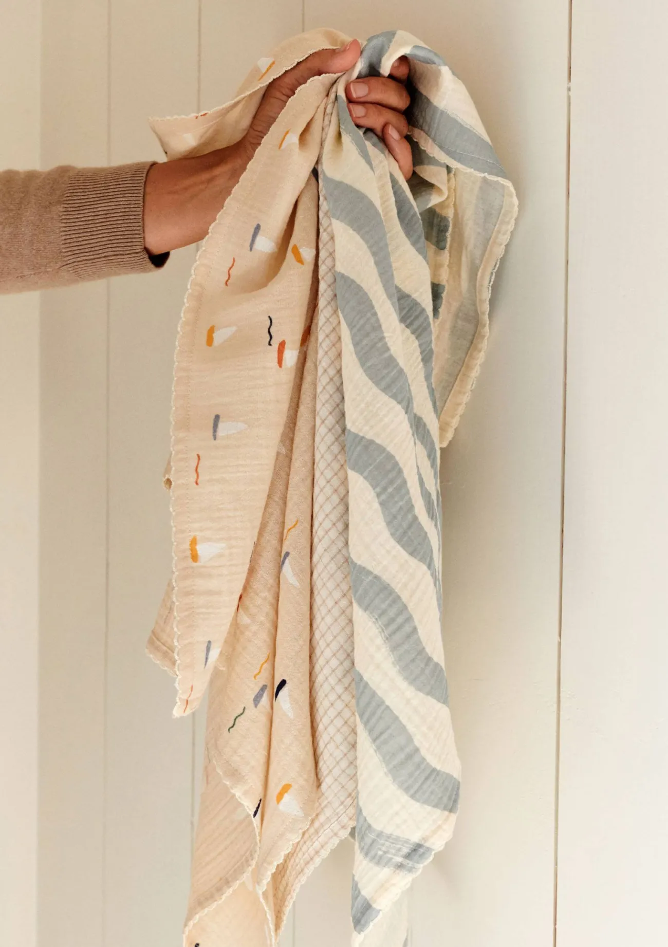 - drei Musselin-Mulltücher
