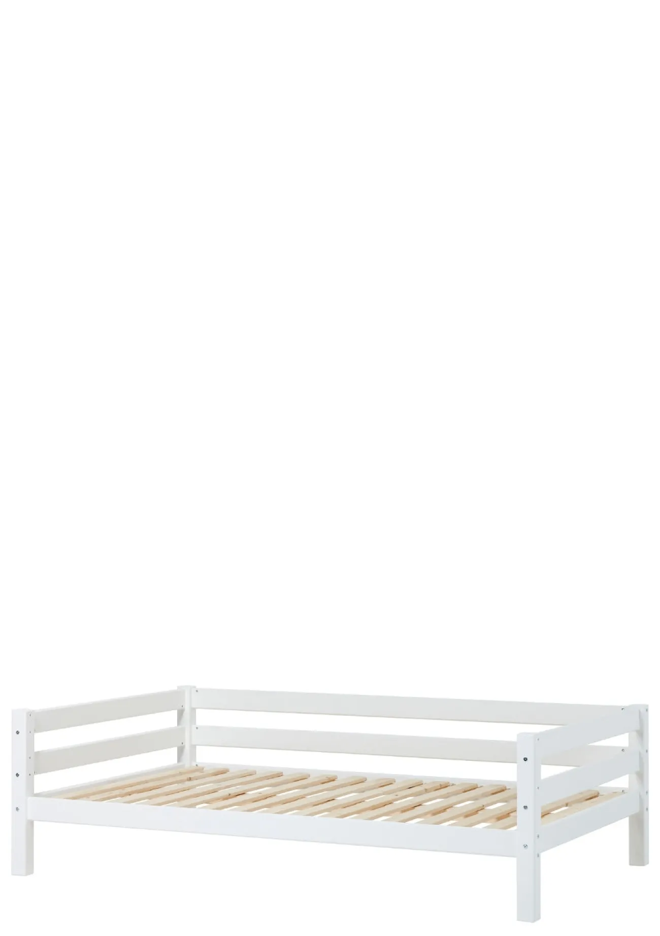 Eine hervorragende Basis stellt dieses hochwertige Einzelbett mit extra großem Schlafbereich dar, welches mit einem zusätzlichen Bettschutzgitter in verschiedenen Größen erhältlich ist. Die stabile Bettvariante bietet deinem Liebling höchsten Komfort und ist dank des modularen Systems ein echter Verwandlungskünstler. Mit entsprechenden Modulen lässt sich das Bett erweitern und ganz einfach in ein Hoch- oder Etagenbett umwandeln. So könnt ihr gekonnt auf sich ändernde Bedürfnisse eingehen, zum Beispiel, wenn sich ein Geschwisterkind ankündigt oder mehr Platz benötigt wird. Einfach praktisch!