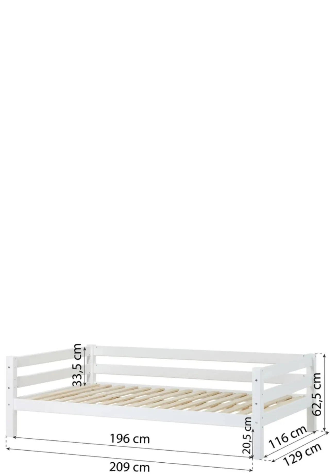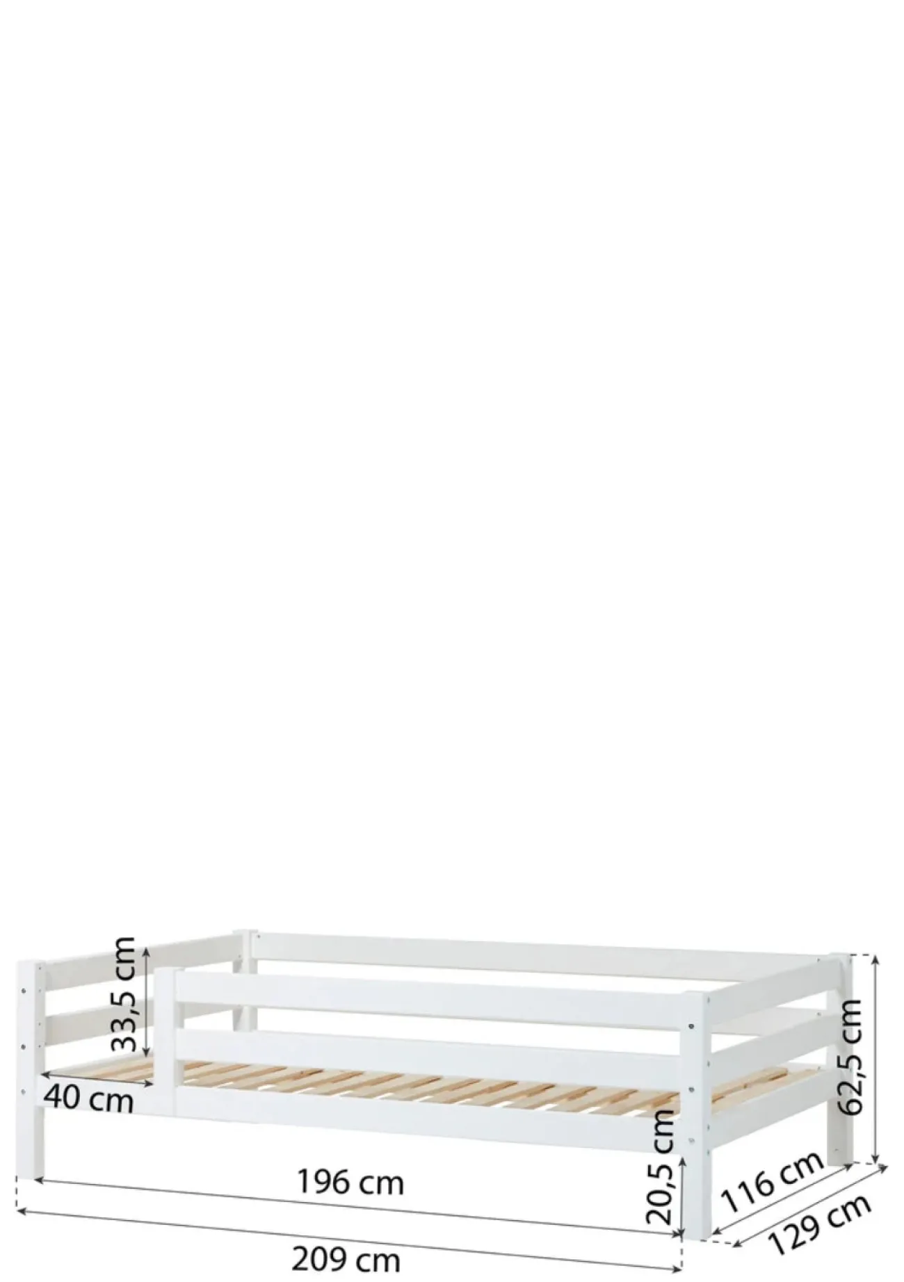 - je nach Alter des Kindes/Sicherheitsbedürfnis optional mit einem Bettschutzgitter in verschiedenen Größen erhältlich: ohne Rausfallschutz, mit kleinem oder großem Rausfallschutz (bitte geeignete Variante auswählen!)