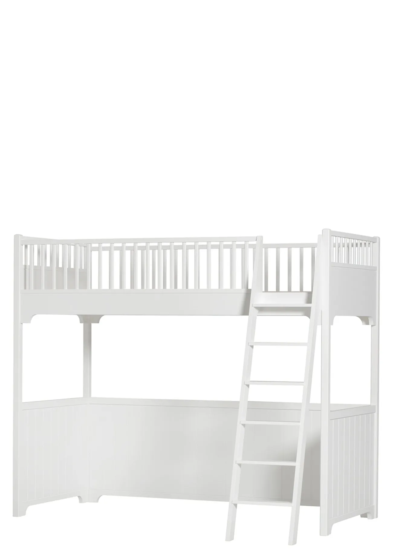 Das Hochbett aus der Seaside Collection von OLIVER FURNITURE ist das perfekte Bett für ältere Kinder und einzigartig im Bereich der Kinderbetten. Mit seinem hervorragenden Design sieht es zudem ganz zauberhaft aus. Der Bereich unter dem Bett kann durch die weiße Wandverkleidung wie ein kleines extra Zimmer gestaltet werden.
