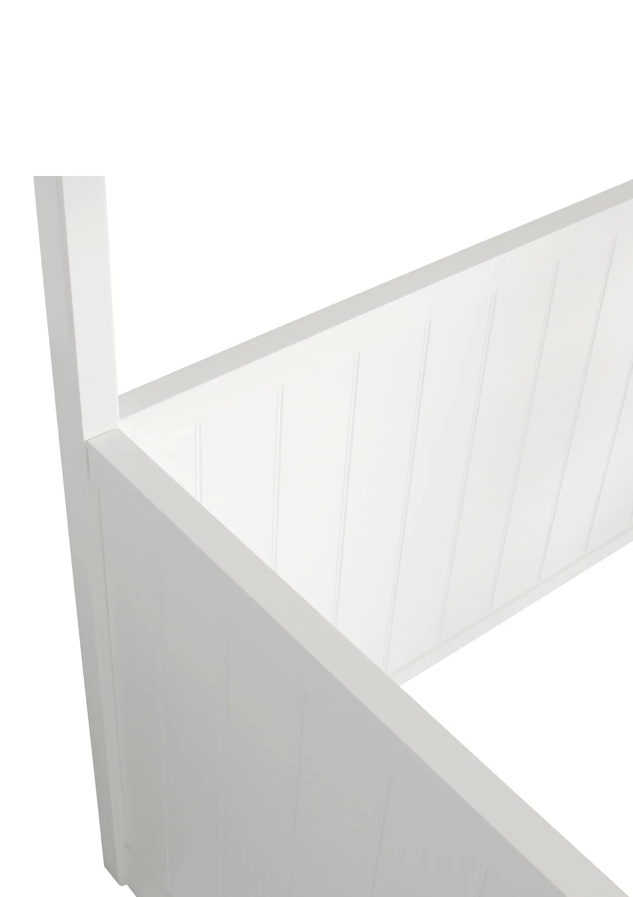 - weiße Wandverkleidung unter dem Bett