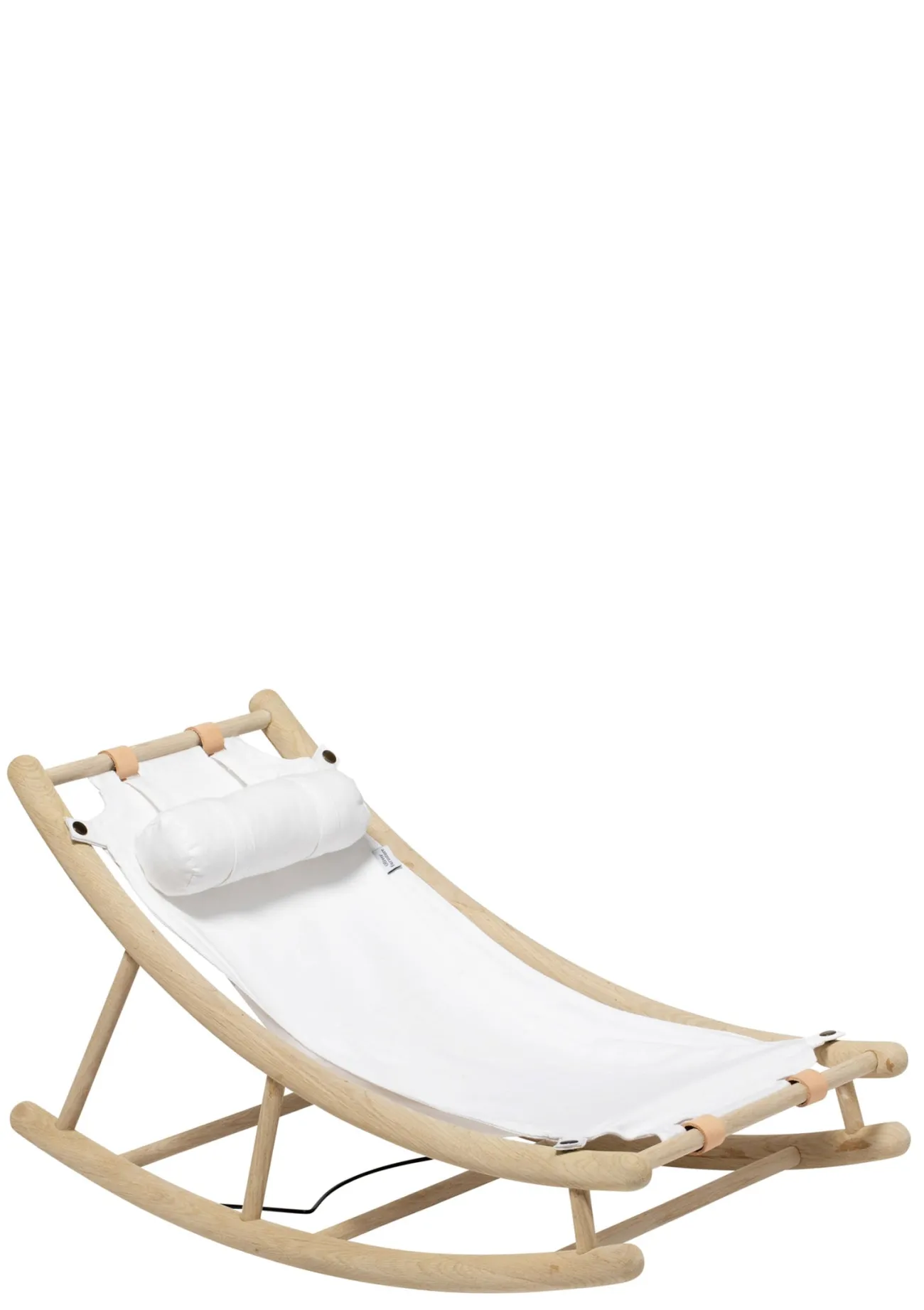 - Material: Rahmen aus Eiche massiv (weiß geölt), Sitz aus Oeko-Tex Baumwolle, Riemen aus Leder