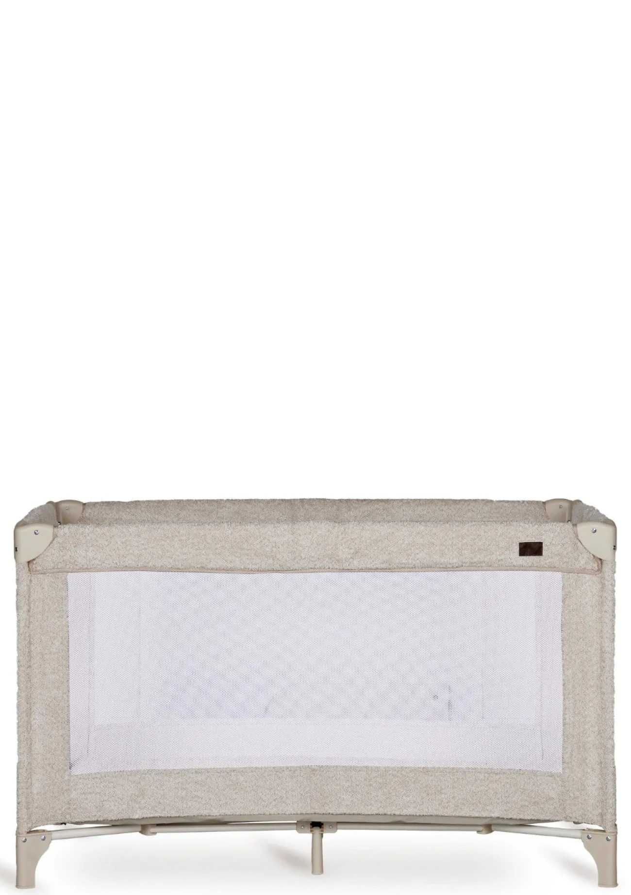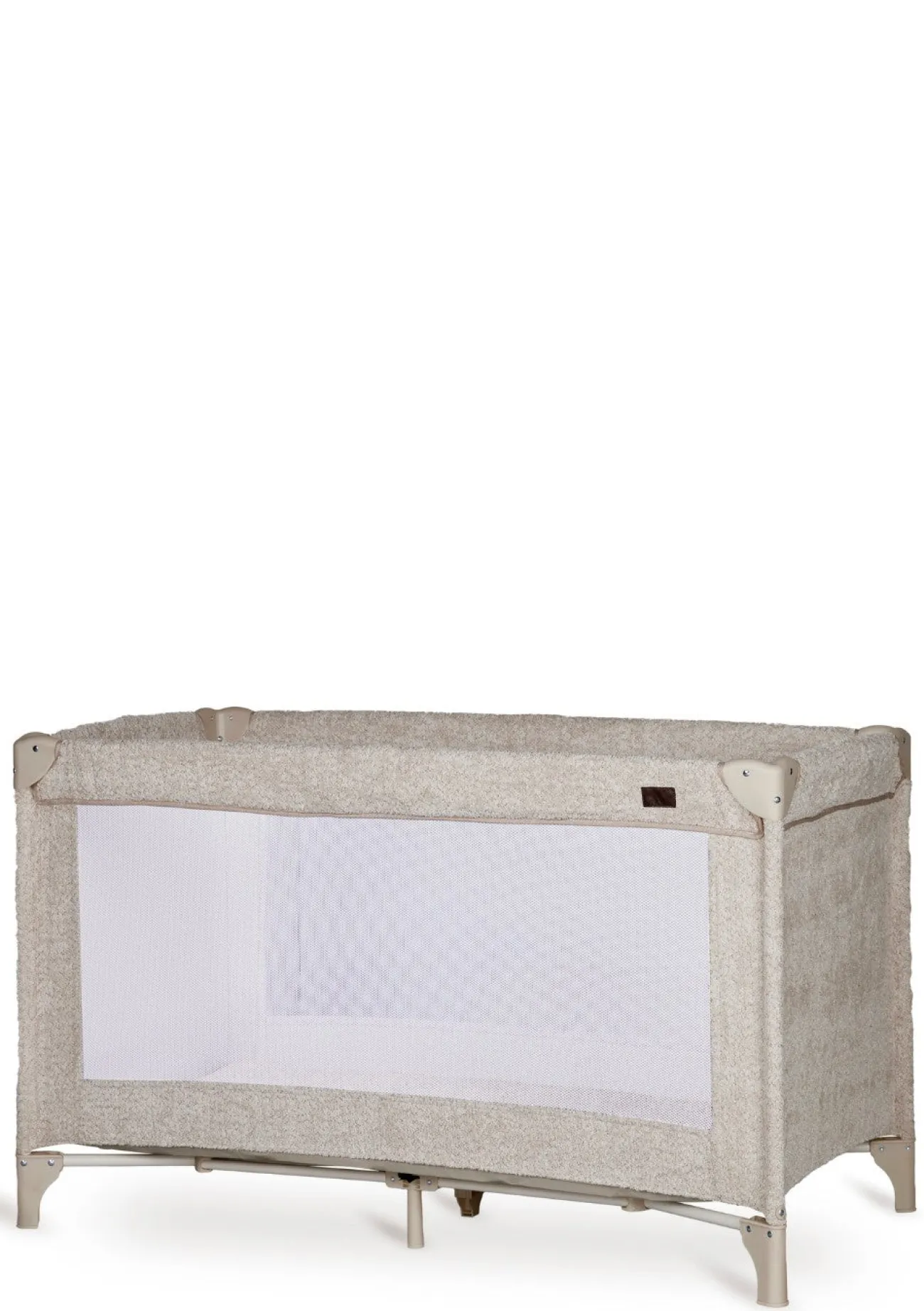 - modernes Reisebett mit weicher Bouclé-Optik