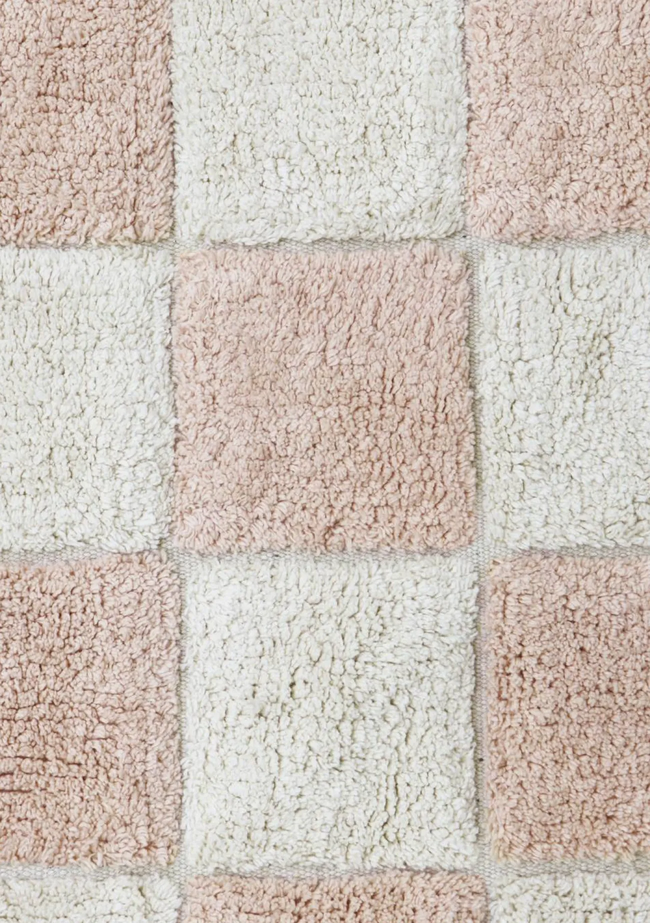 Dieser schlicht-schöne Teppich begeistert in sanftem Farbton und bringt das traditionelle Schachbrettmuster von Küchenfliesen in dein Zuhause. Statt kühler Keramik trifft hier nachhaltiger Komfort auf stilvolles Design. Die „Kachelfugen“ geben den Blick auf die darunter liegende Unterlage frei, die durch die Mischung der Lorena Canals RugCycled® Basis (aus wiederverwerteten Stoffresten) mit natürlichem, ungefärbtem Baumwollgarn entsteht. Der zauberhafte Blickfänger versprüht einen einzigartigen Charme und sorgt für Gemütlichkeit in verschiedenen Räumen.