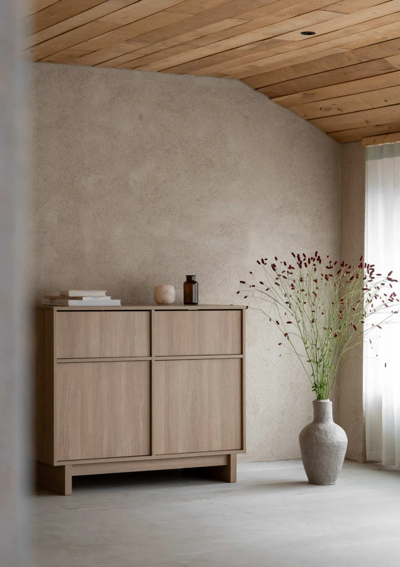 Inspiriert vom Modernismus des Architekten Alvar Aaltos vereint diese Möbelserie warme Holznuancen, klare Linien und sanfte Formen und schafft eine ruhige, harmonische Umgebung.