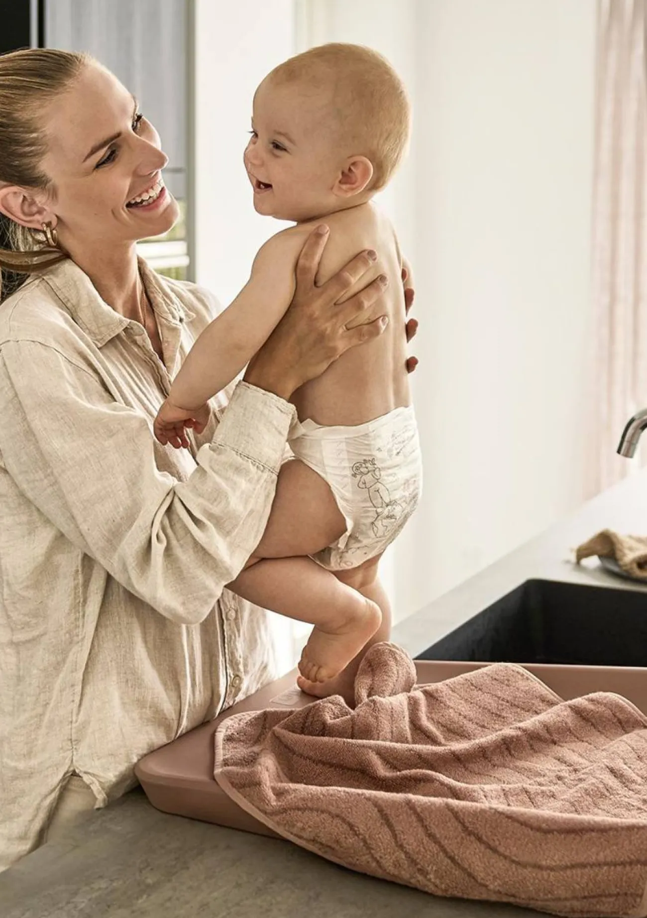Die Wickelauflage LEANDER Matty™ ist Gewinner des German Design Award 2019 – und das zu Recht! Sie setzt nicht nur neue Standards in puncto sicheres Wickeln, sondern wird zum Lieblings-Wellnessort für dein Baby. Aus sehr weichem PUR-Formschaum in Dänemark gefertigt, fühlt sie sich für dein Baby zart, samtig und warm an und es entsteht ein wunderbar angenehmes Haut-auf-Haut-Gefühl. Ein weiterer Vorteil ist die einfache Reinigung mit Wasser oder einer milden Seifenlauge. Bei Bedarf kann die Auflage sogar mit einem Textiltuch mit Ethanol oder einem alkoholhaltigen Reiniger (max. 70 % Alkohol) desinfiziert werden. Die flexibel einsetzbare Wickelunterlage verfügt über kleine Gummifüße, die für einen stabilen Stand sorgen und ausreichend Luftzirkulation ermöglichen. Wickeln war nie komfortabler!
