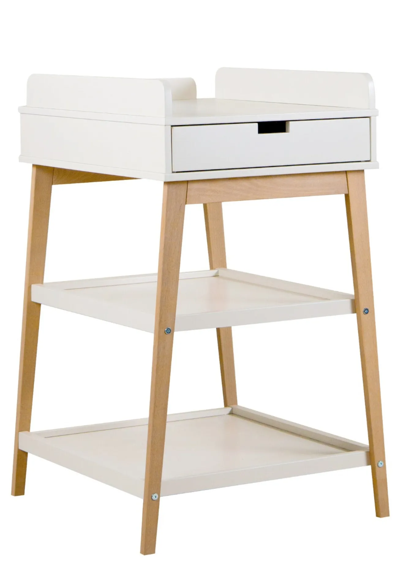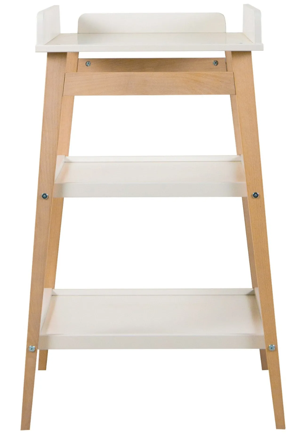 Eine platzsparende Alternative zur klassischen Wickelkommode ist ein kompakter Wickeltisch. Dieses zeitlos schöne Modell kommt vom belgischen Label QUAX und versprüht skandinavische Leichtigkeit. Die Tischplatte ist mit erhöhten Seitenrändern ausgestattet, damit dein kleiner Schatz beim Wickeln besser geschützt ist. Windeln, Pflegeprodukte und Co. finden auf den beiden praktischen Ablageflächen ihren festen Platz und sind so jederzeit griffbereit.