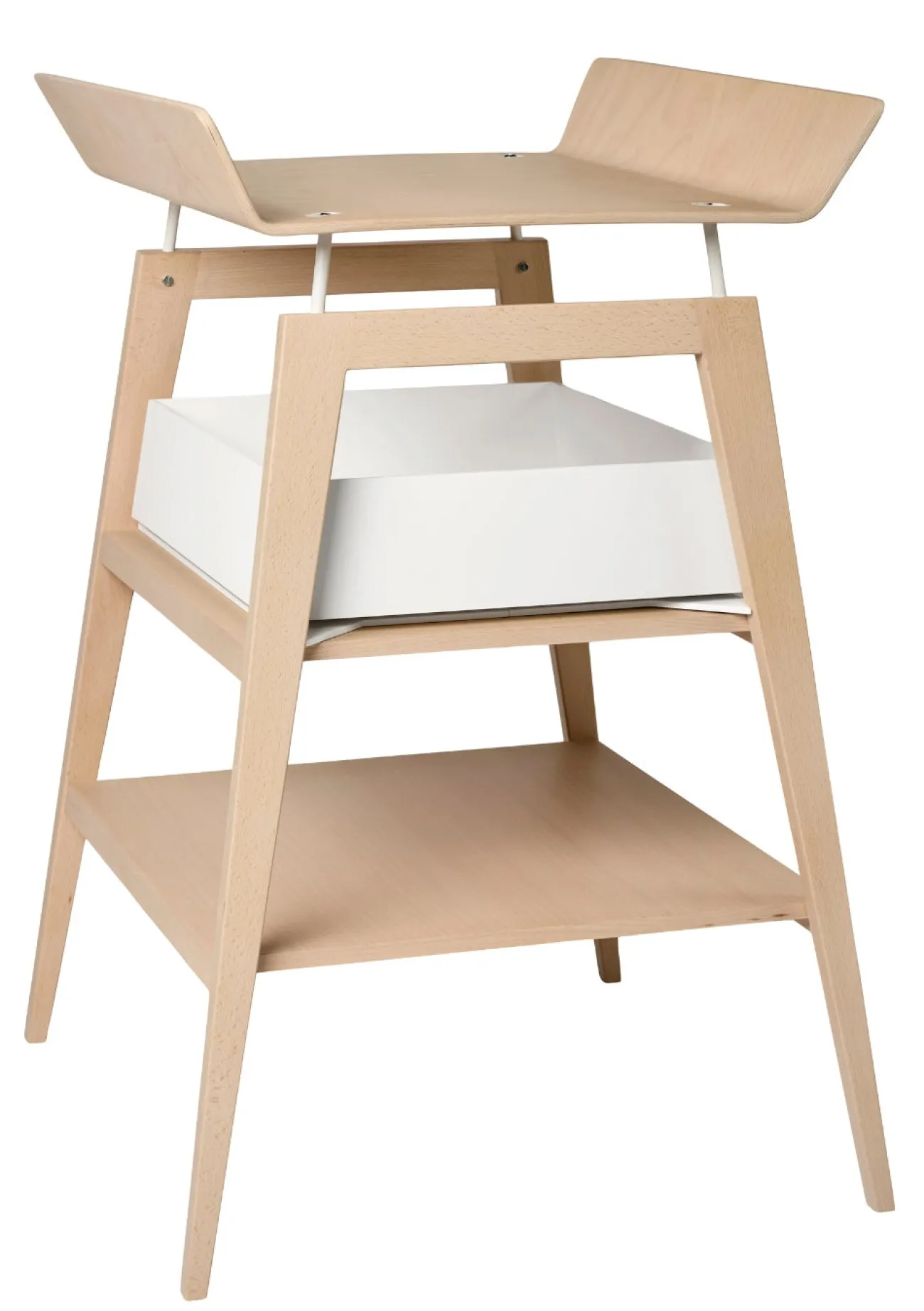 Für eine ganz entspannte Babypflege: der LEANDER Linea Wickeltisch aus massiver Buche