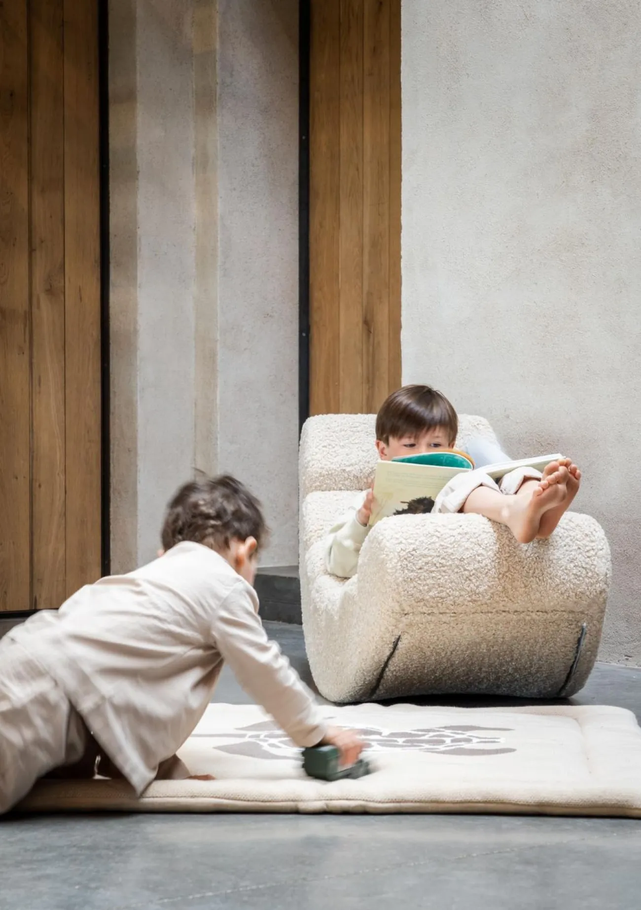 Mit dem Schaukelstuhl von QUAX zieht fröhliche Gemütlichkeit ins stilvolle Zuhause moderner Familien ein. Ob zum Vorlesen, Kuscheln oder als Rückzugsort für kleine Abenteurer – dieser Schaukelstuhl begeistert Groß und Klein gleichermaßen. Durch sein imposantes Design ist das Polstermöbel ein echter Hingucker im Raum. Gleichzeitig bietet er dir und deinem Kind mit seiner ergonomischen Form einen Rückzugsort zum Ausruhen und Entspannen. Der weiche Teddy-Stoff erhöht den Kuschelfaktor und erzeugt eine angenehme Haptik. Der Schaukelstuhl überzeugt aber nicht nur optisch, sondern auch durch seine robuste Qualität. Selbst wilden Kletterpartien und ausgelassenen Spiel- und Tobe-Aktionen hält er mühelos stand – ein zuverlässiger Begleiter im Familienalltag und eine charmante Ergänzung für jedes Zuhause!