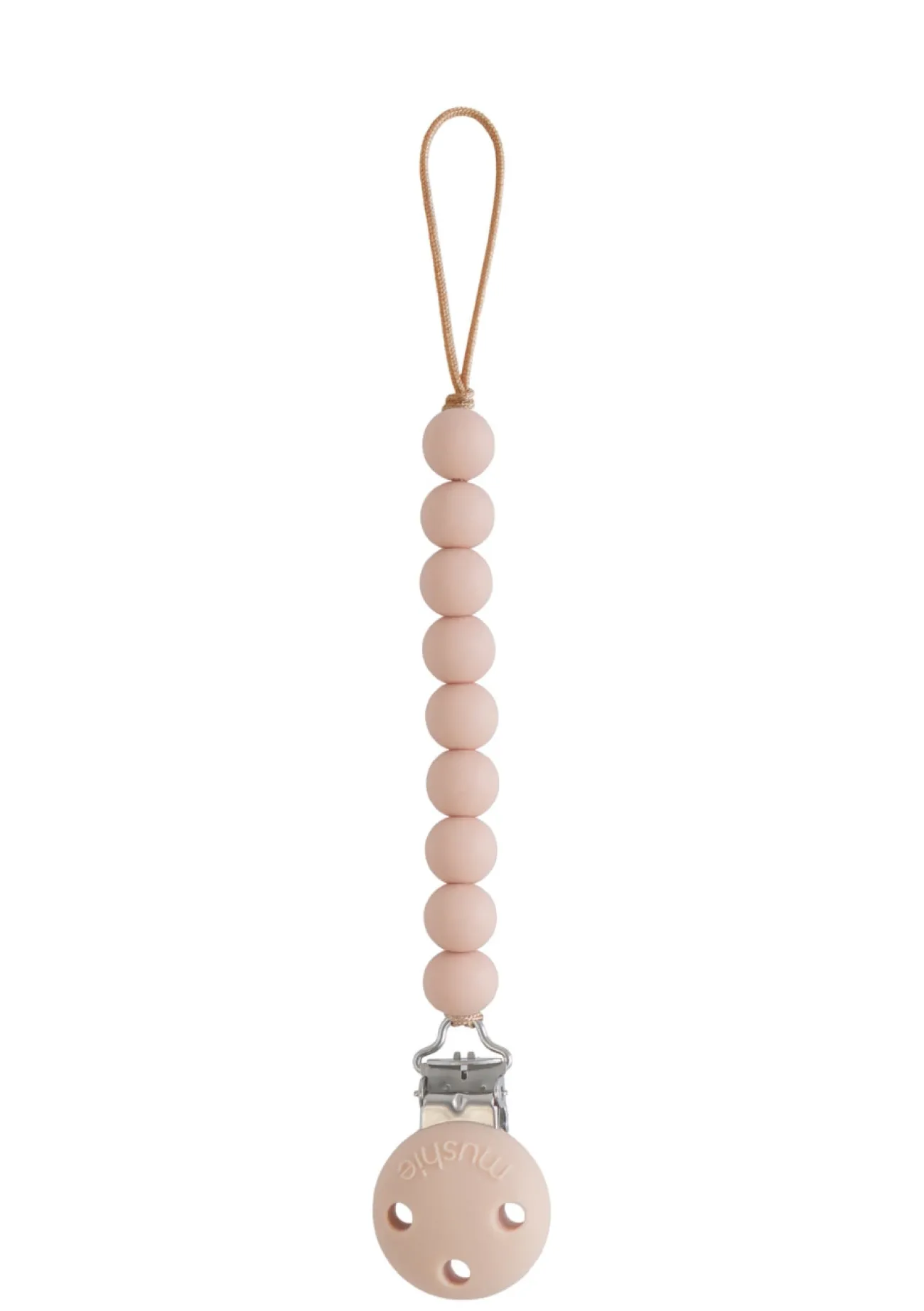 Diese schlicht-elegante Schnullerkette vom amerikanischen Label MUSHIE ist nicht nur ein unheimlich nützliches Baby-Accessoire, sondern auch ein echter Hingucker. Gefertigt wurde die hübsche Perlen-Kette mit dem praktischen Clip aus hochwertigen Silikon, selbstverständlich lebensmittelecht und frei von Schadstoffen.