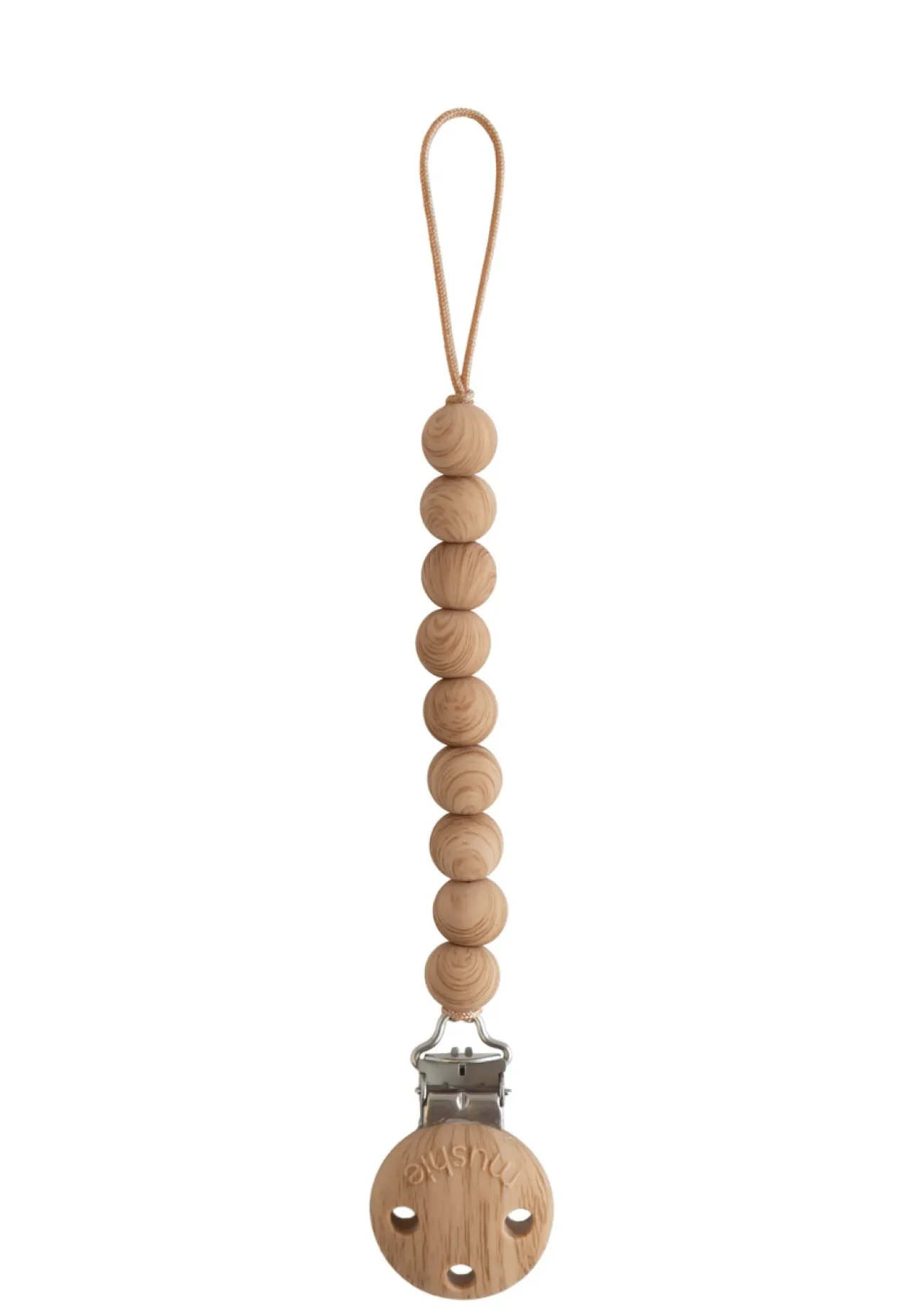 Diese schlicht-elegante Schnullerkette in Holz-Optik vom amerikanischen Label MUSHIE ist nicht nur ein unheimlich nützliches Baby-Accessoire, sondern auch ein echter Hingucker. Gefertigt wurde die hübsche Perlen-Kette mit dem praktischen Clip aus hochwertigen Silikon, selbstverständlich lebensmittelecht und frei von Schadstoffen.