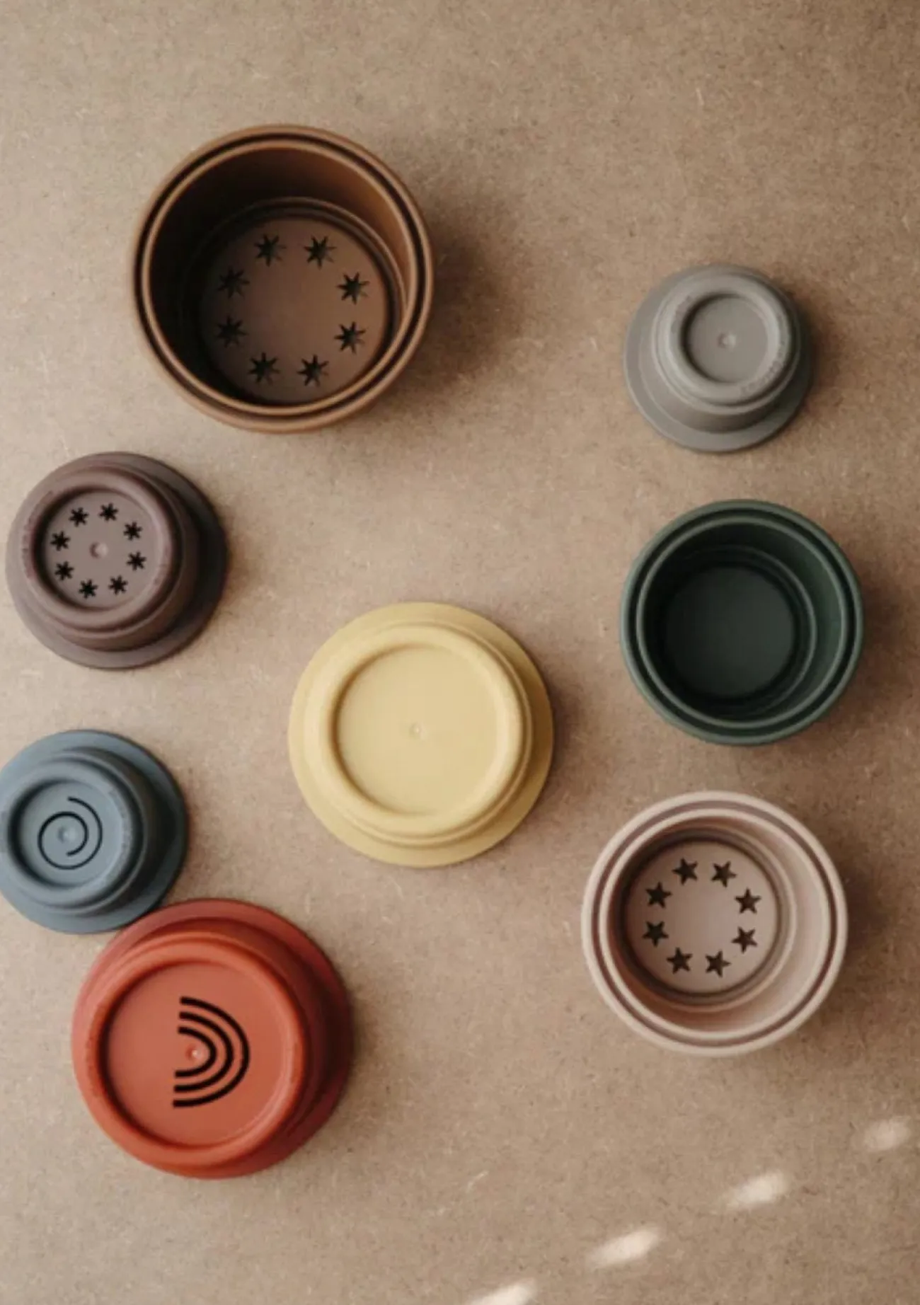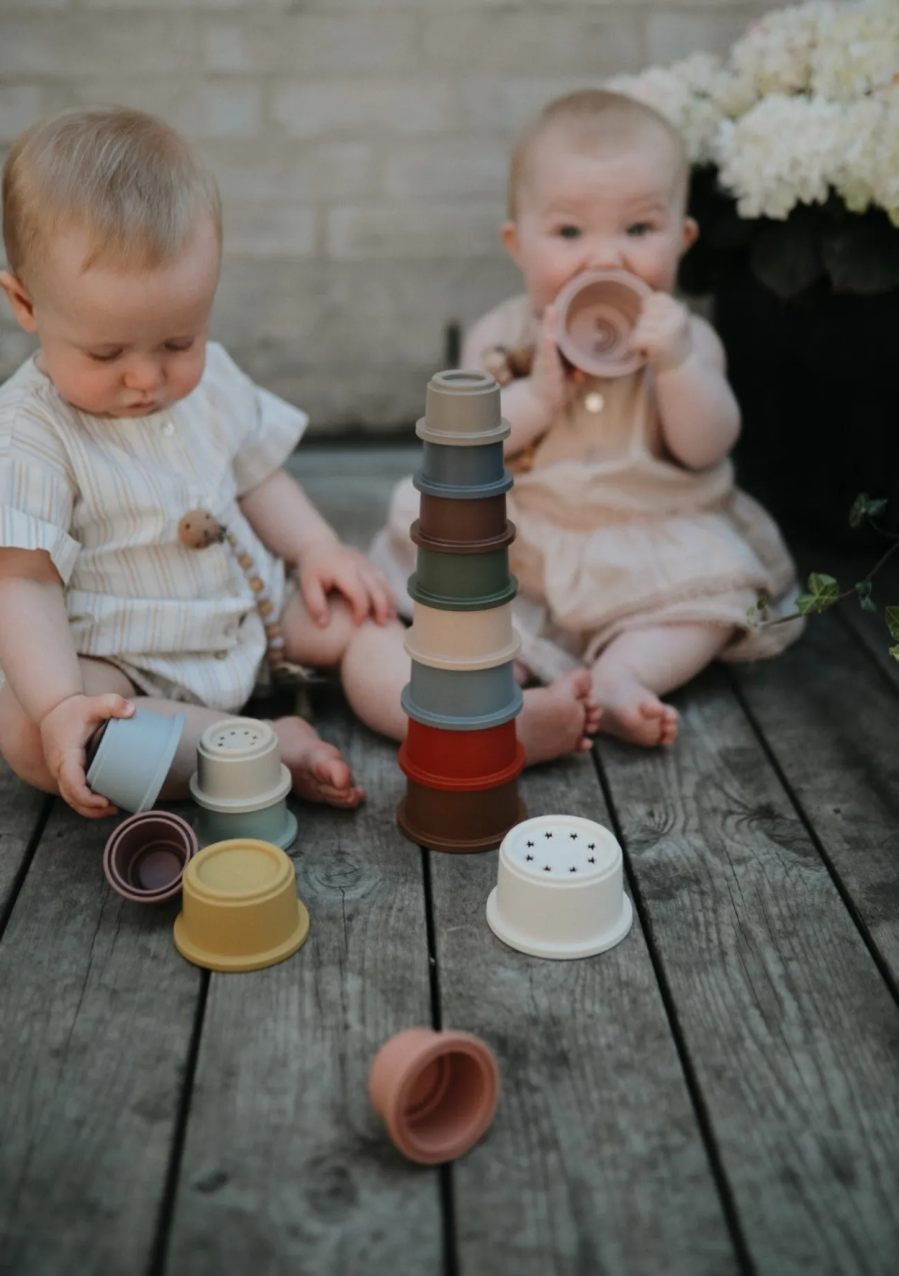 Die liebevoll gestalteten Stapelbecher des dänischen Labels MUSHIE bieten nicht nur stundenlangen Spielspaß, sondern fördern ganz nebenbei auch die Feinmotorik, Hand-Auge-Koordination und das logische Denken deines Kindes. In sanften Farben passen sie perfekt ins Kinderzimmer – und sind ebenso vielseitig draußen im Garten, am Strand oder in der Badewanne einsetzbar.