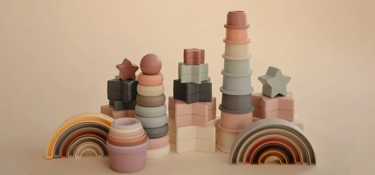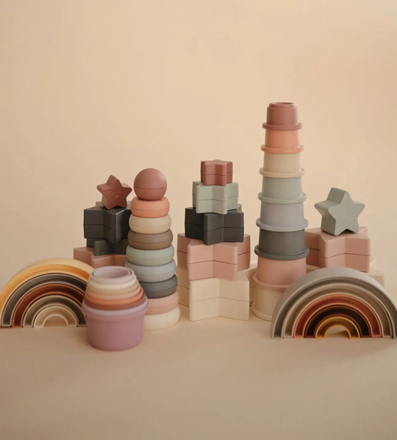 Aus der dänischen Hygge-Kollektion von mushie stammt dieses schöne, verspielte Regenbogen-Set zum Sortieren, Stapeln, Stecken & Spielen. Von der Regenbogenpromenade in Aarhus, Dänemark, inspiriert, ist der Regenbogen auch zeitgleich eine hübsche Dekoration im Kinderzimmer! Kinder können damit Türme, Brücken oder fantasievolle Strukturen bauen und so ihre motorischen Fähigkeiten und ihr logisches Denken entwickeln.