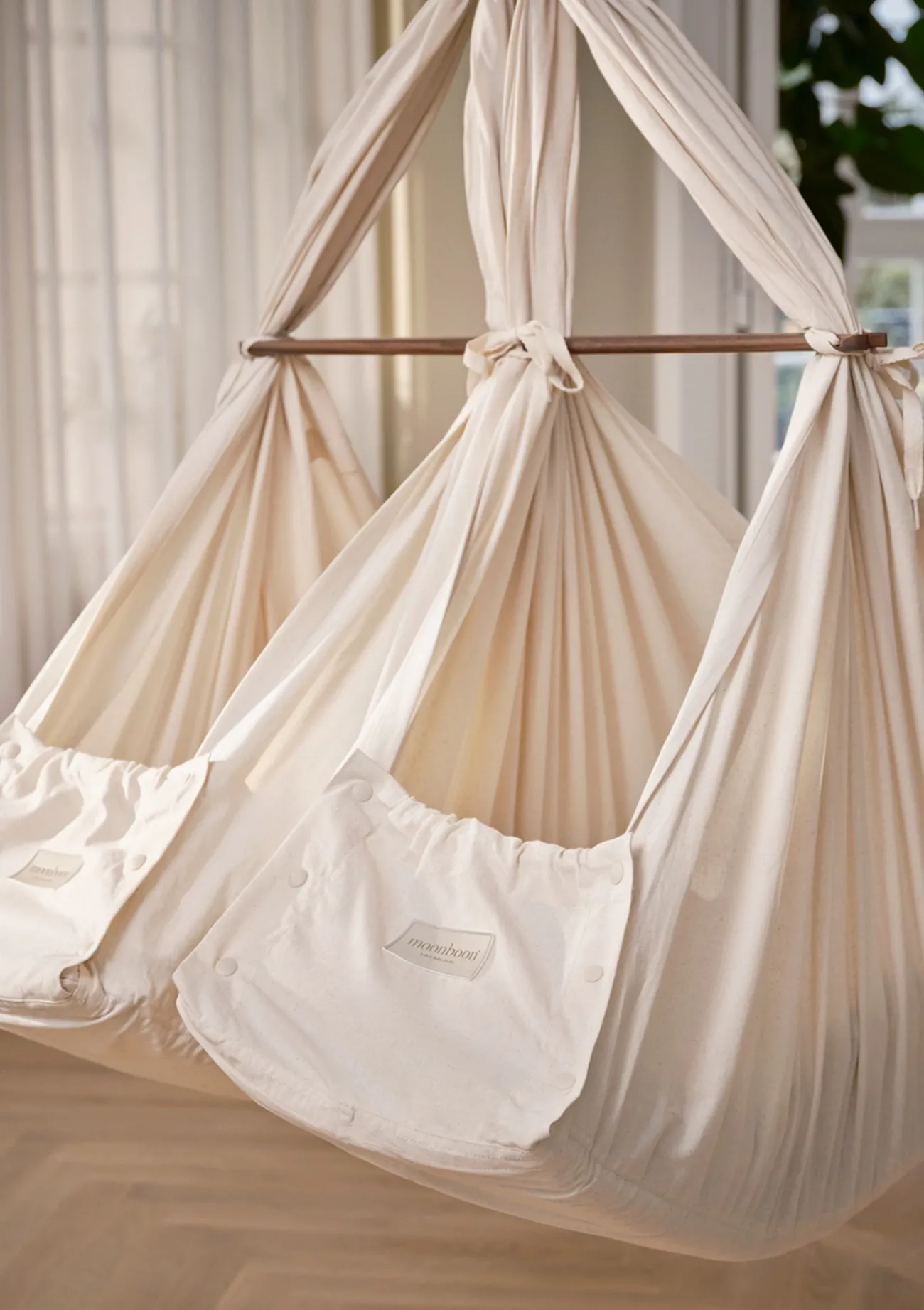 Endlich gibt es sie: Die Federwiege von MOONBOON für Zwillinge. Durch die Schaukelbewegungen bekommen eure Babys ein Gefühl der Ruhe und finden gemeinsam leichter in den Schlaf. Sie ist außerdem so konstruiert, dass auch nur ein Kind darin liegen kann, ohne dass ein Gegengewicht nötig wäre.