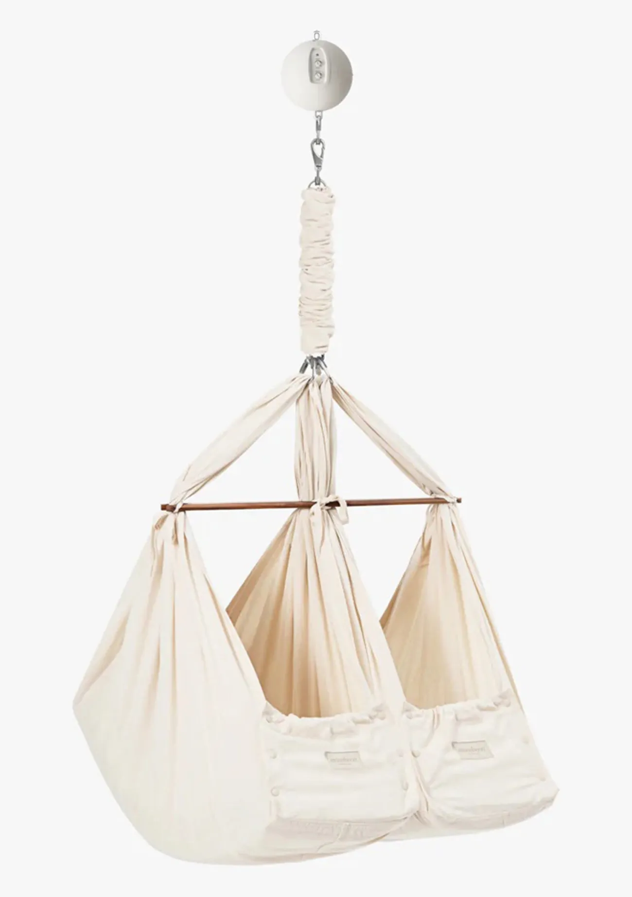 Endlich gibt es sie: Die Federwiege von MOONBOON für Zwillinge. Durch die Schaukelbewegungen bekommen eure Babys ein Gefühl der Ruhe und finden gemeinsam leichter in den Schlaf. Sie ist außerdem so konstruiert, dass auch nur ein Kind darin liegen kann, ohne dass ein Gegengewicht nötig wäre.